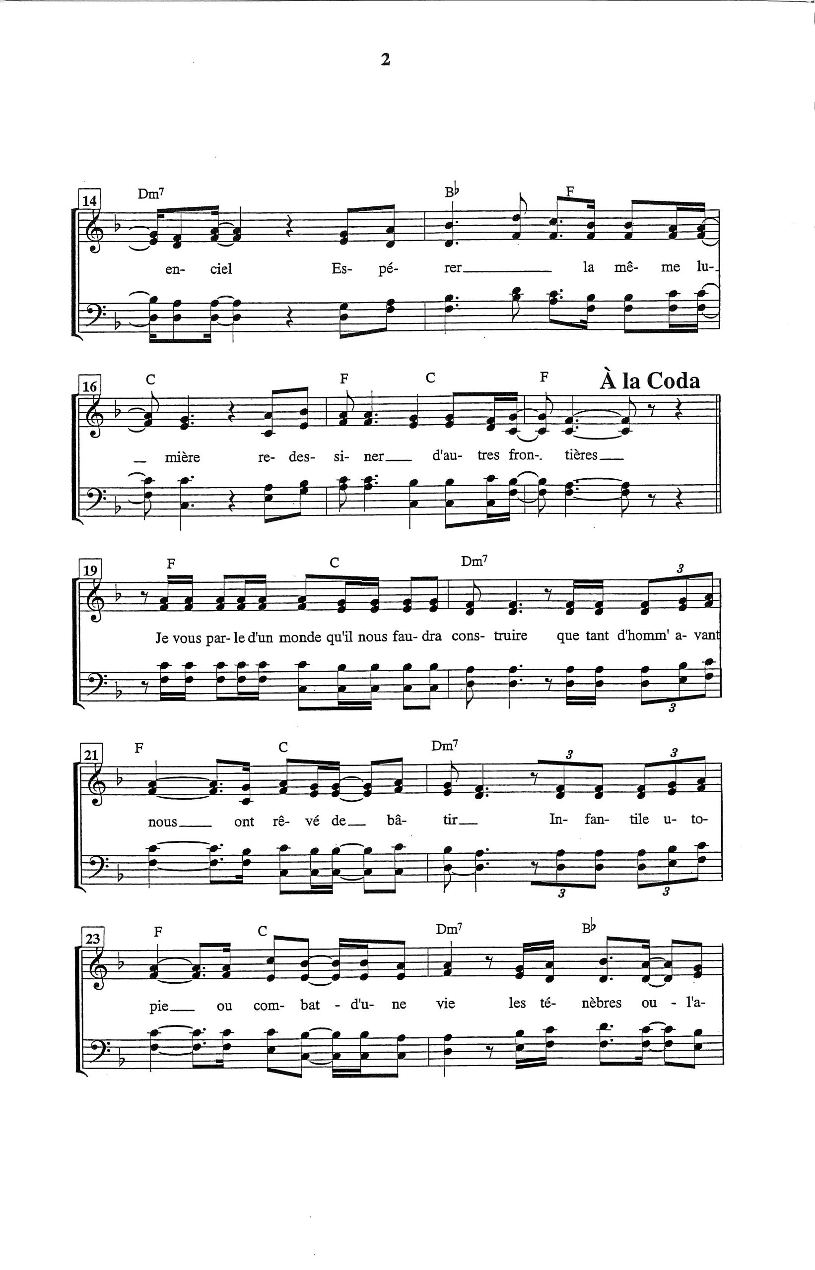 Paroles et musique de NOAH Harmonisation : Claude TURCOTTE
