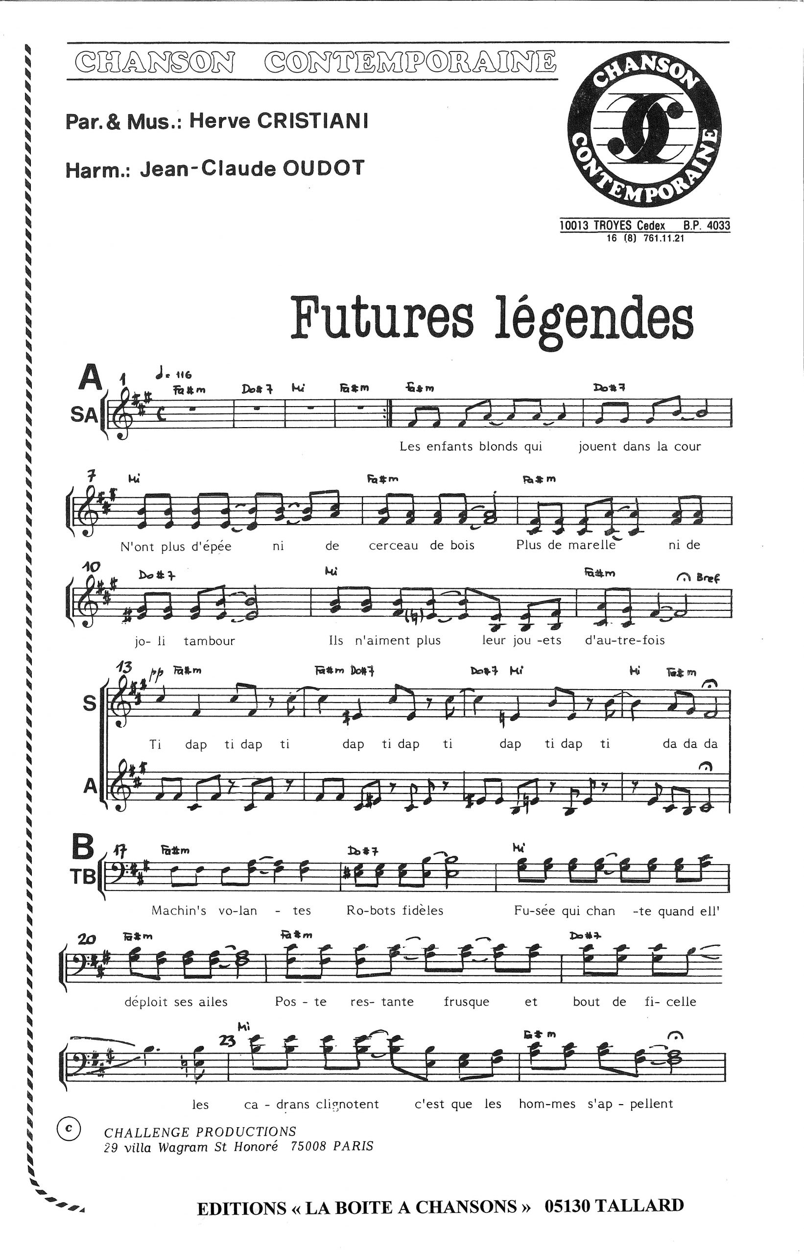 Paroles et musique de CRISTIANI Harmonisation : Jean Claude OUDOT