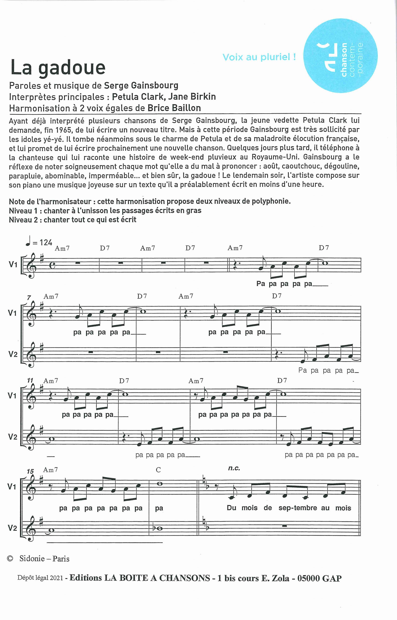 Paroles et musique : S. Gainsbourg Harmonisation : Brice Baillon