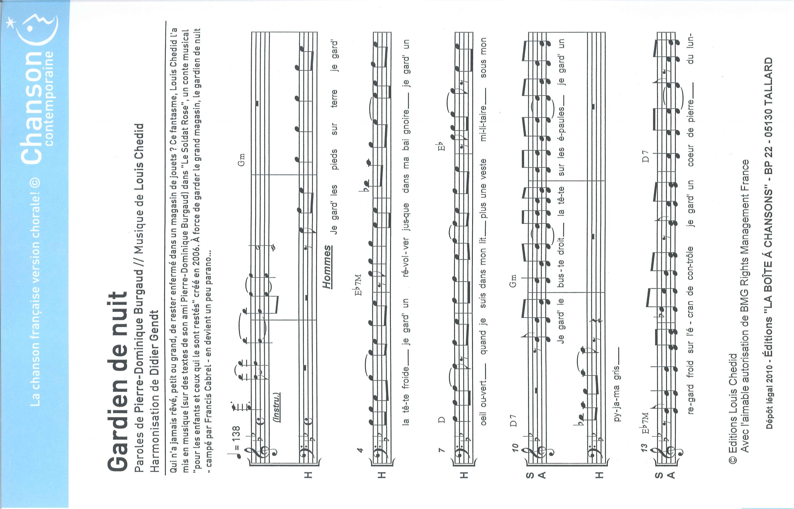 Paroles et musique de BURGAUD/CHEDID Harmonisation : Didier GENDT