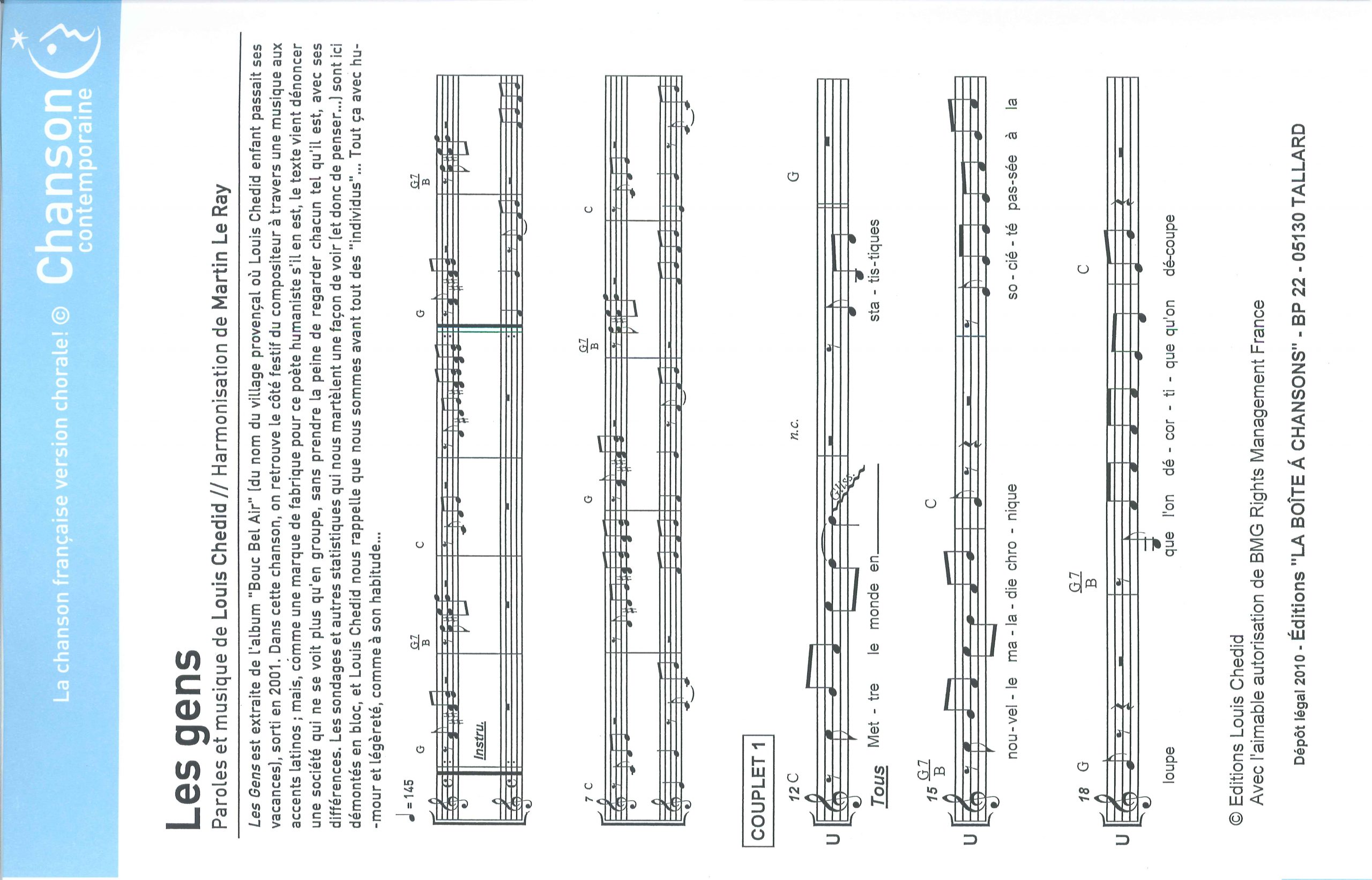 Paroles et musique de CHEDID Harmonisation : Martin LE RAY