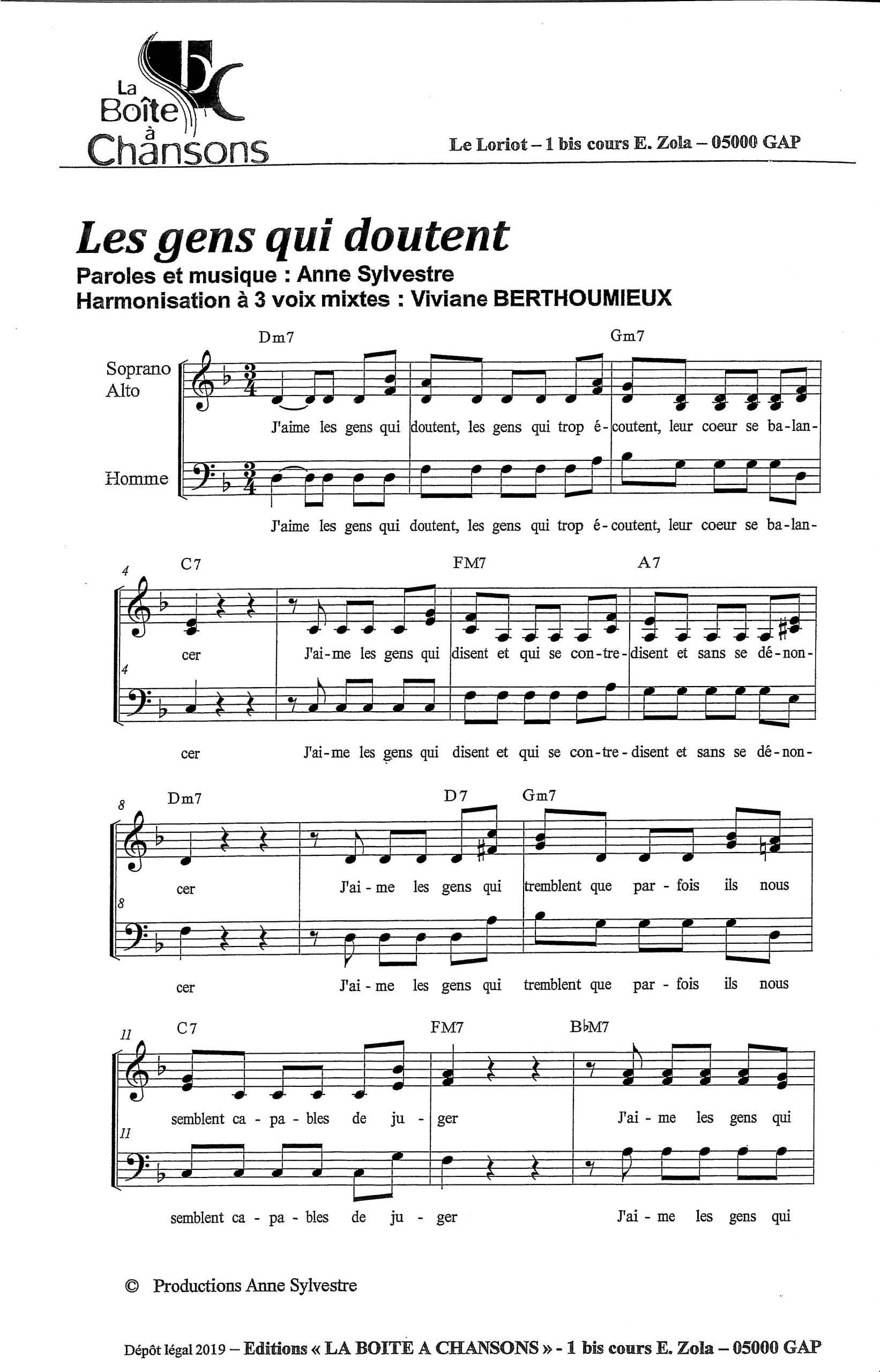 Paroles et musique : A. Sylvestre Harmonisation : Viviane Berthoumieux