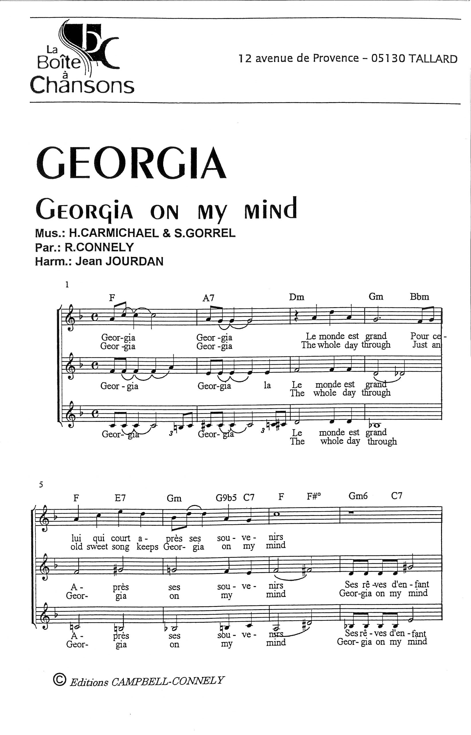 Paroles et musique de CONNELY/CARMICH/GORREL Harmonisation : Jean JOURDAN