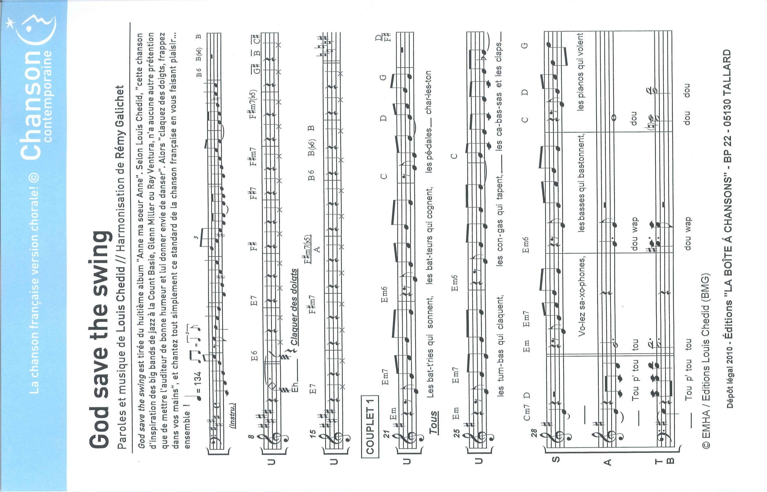 Paroles et musique de CHEDID Harmonisation : Remy GALICHET