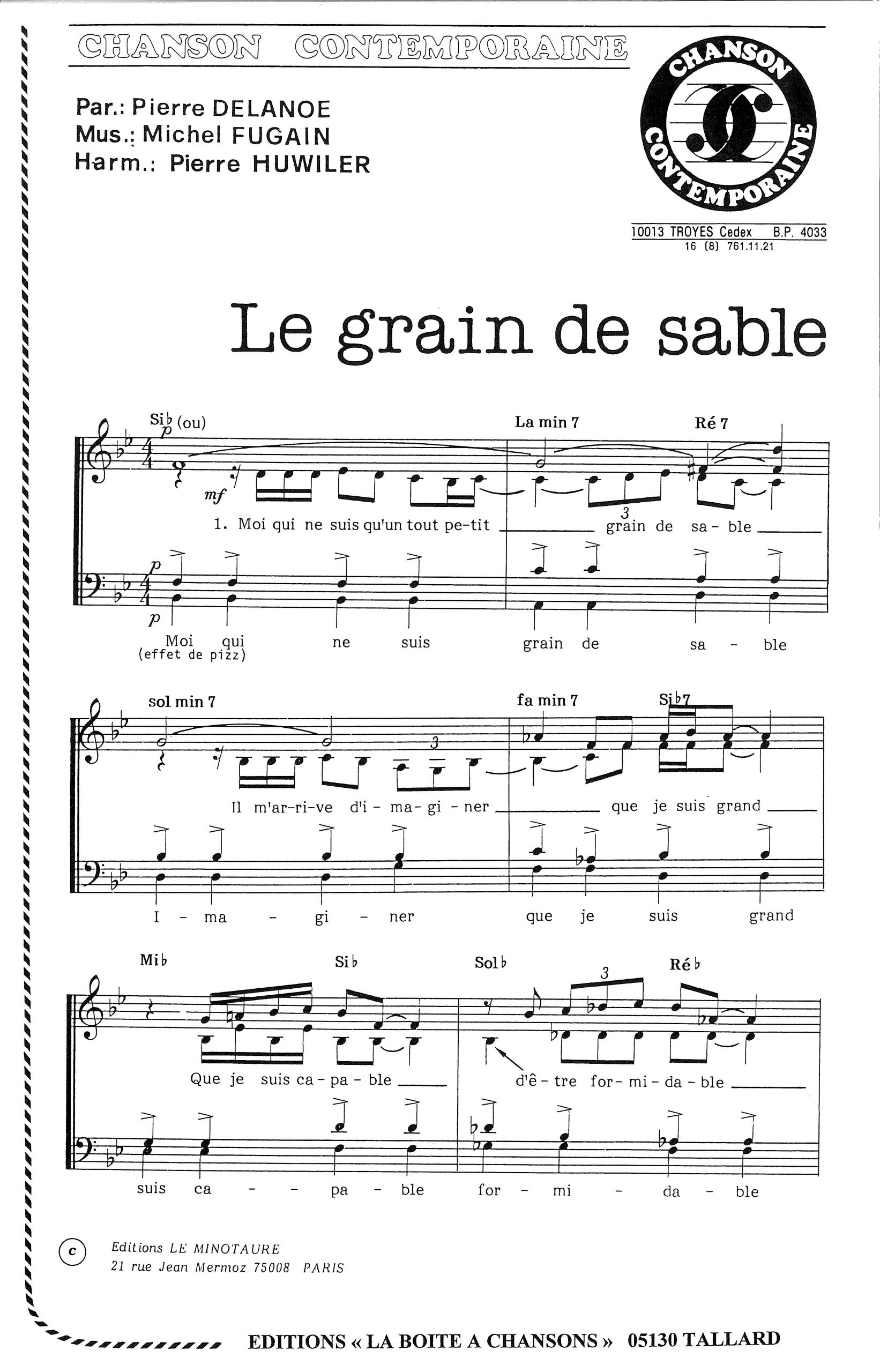 Paroles et musique de DELANOE/FUGAIN Harmonisation : Pierre HUWILER