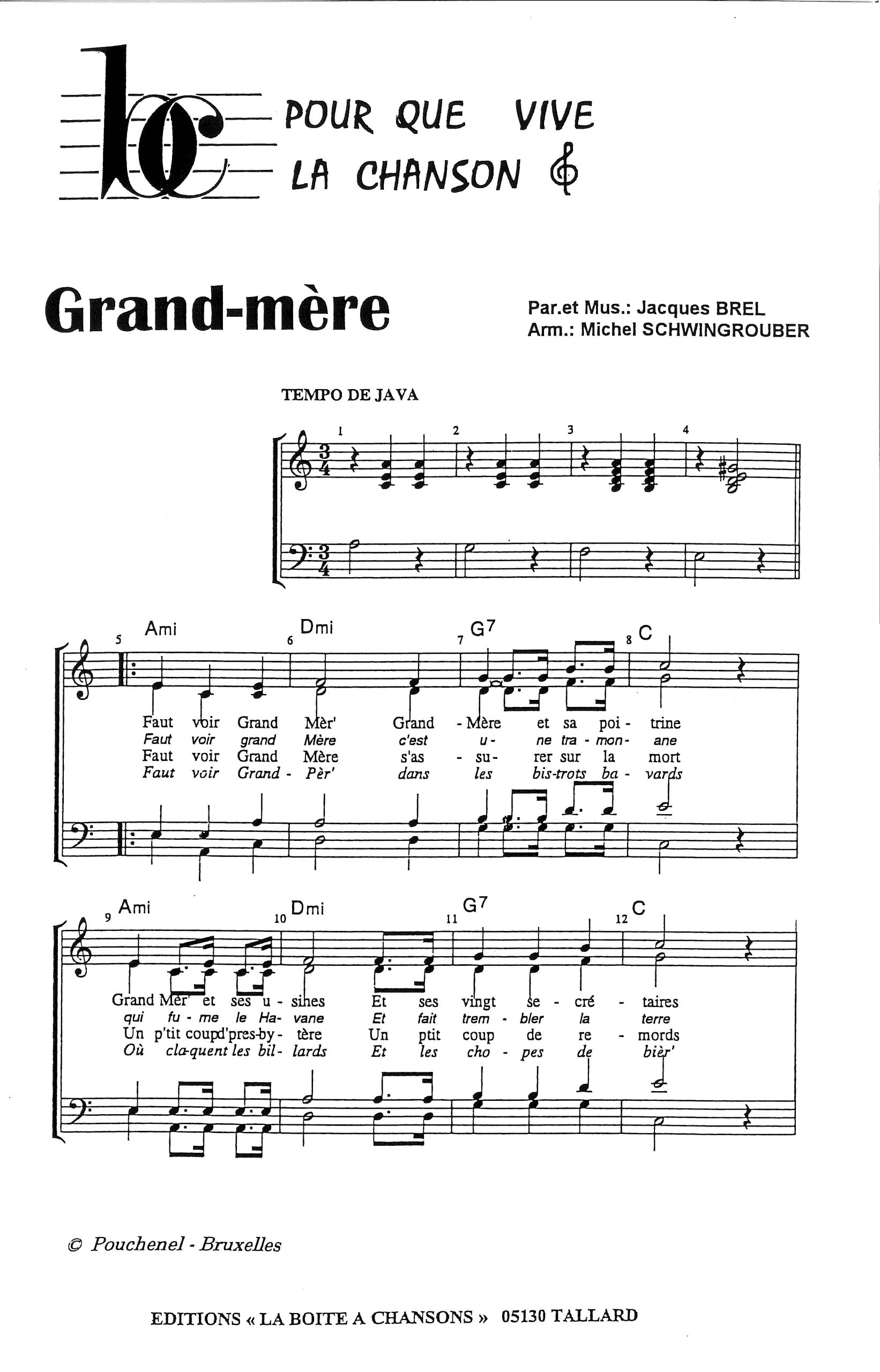 Paroles et musique de BREL Harmonisation : Michel SCHWINGROUBER