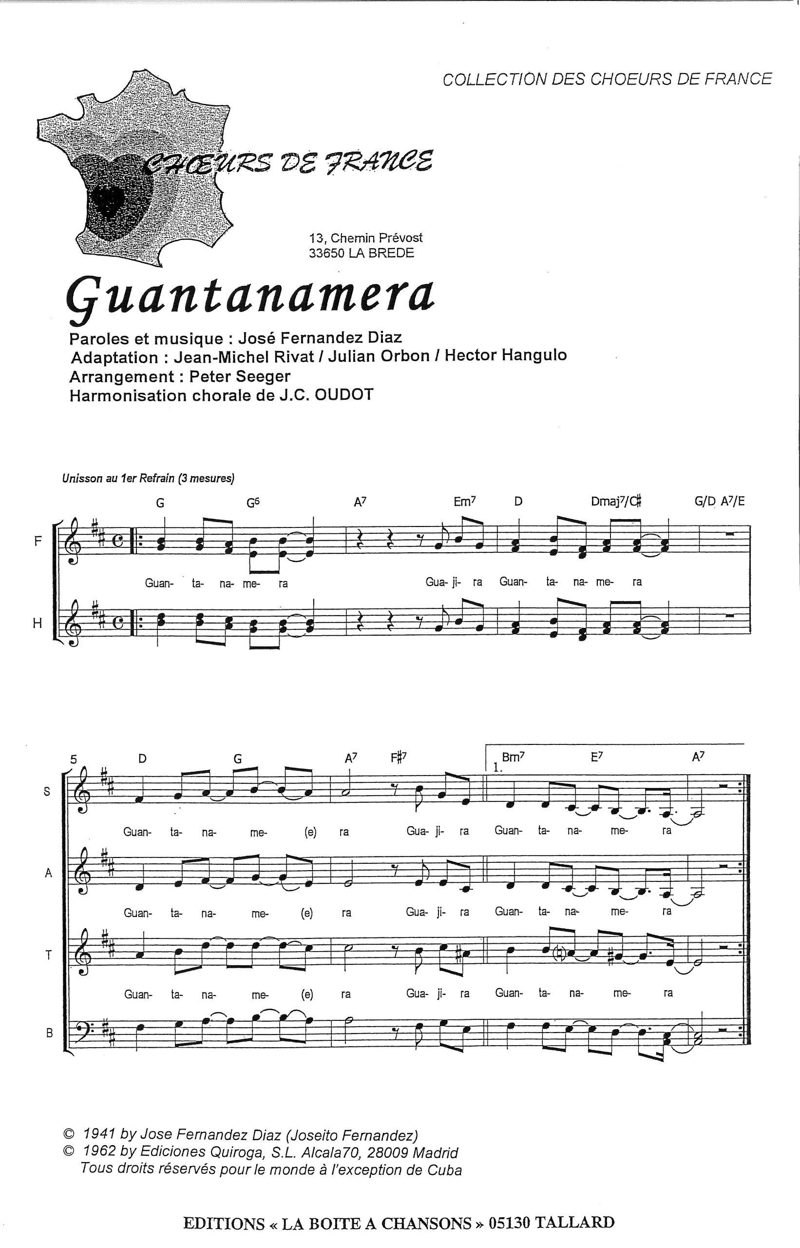 Paroles et musique de DIAZ/RIVAT/TORBON Harmonisation : Jean Claude OUDOT