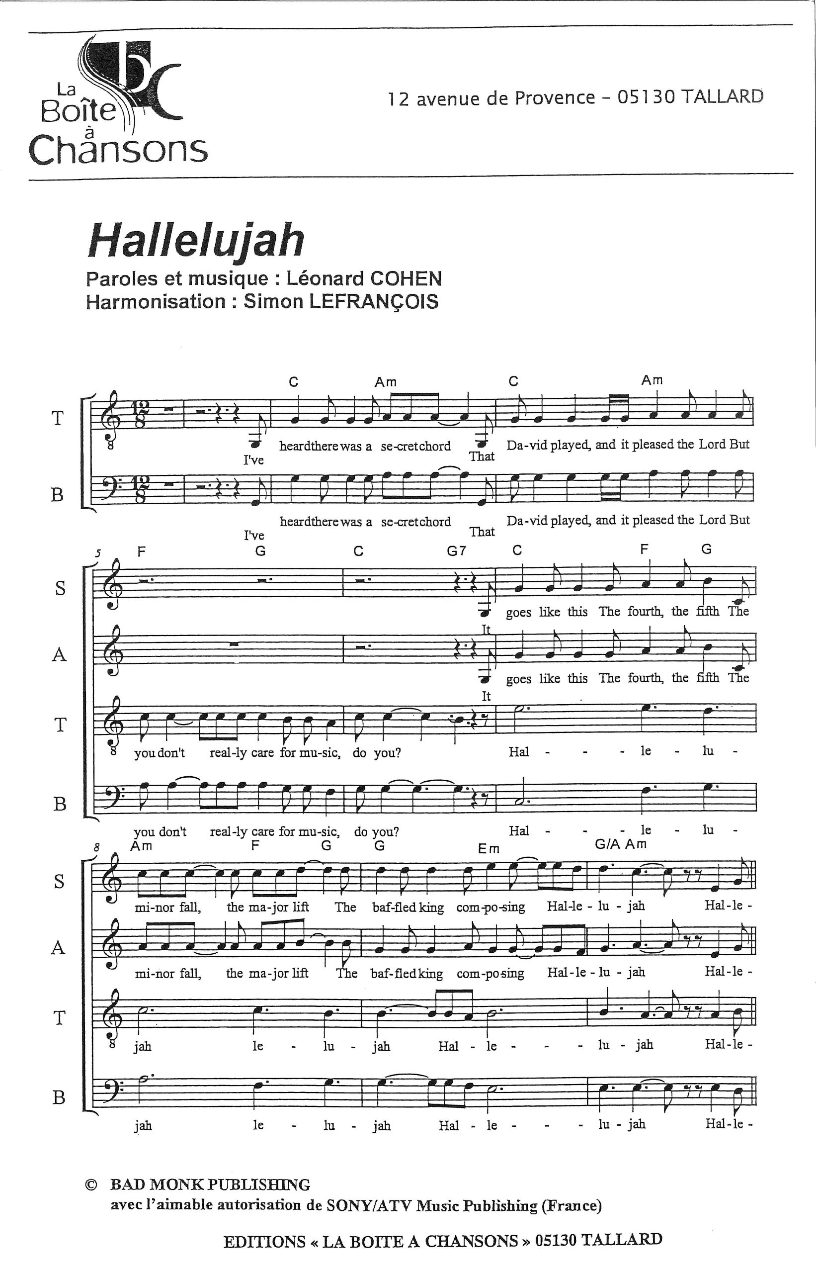 Paroles et musique : Leonard Cohen Harmonisation : Simon LEFRANCOIS