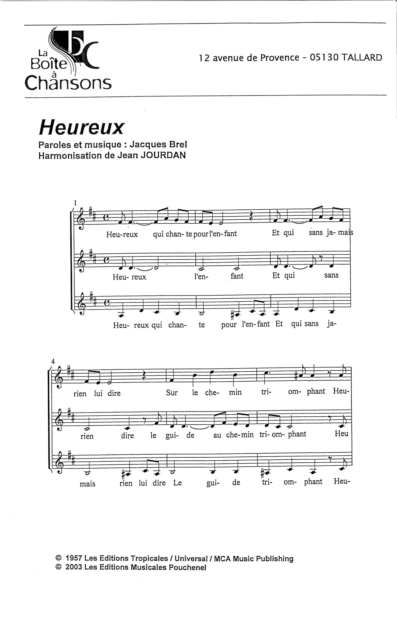 Paroles et musique de BREL Harmonisation : Jean JOURDAN