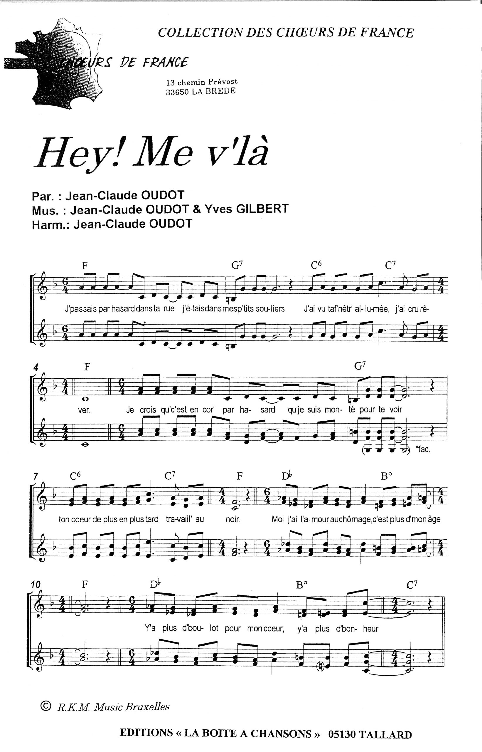 Paroles et musique de OUDOT/GILBERT Harmonisation : Jean Claude OUDOT
