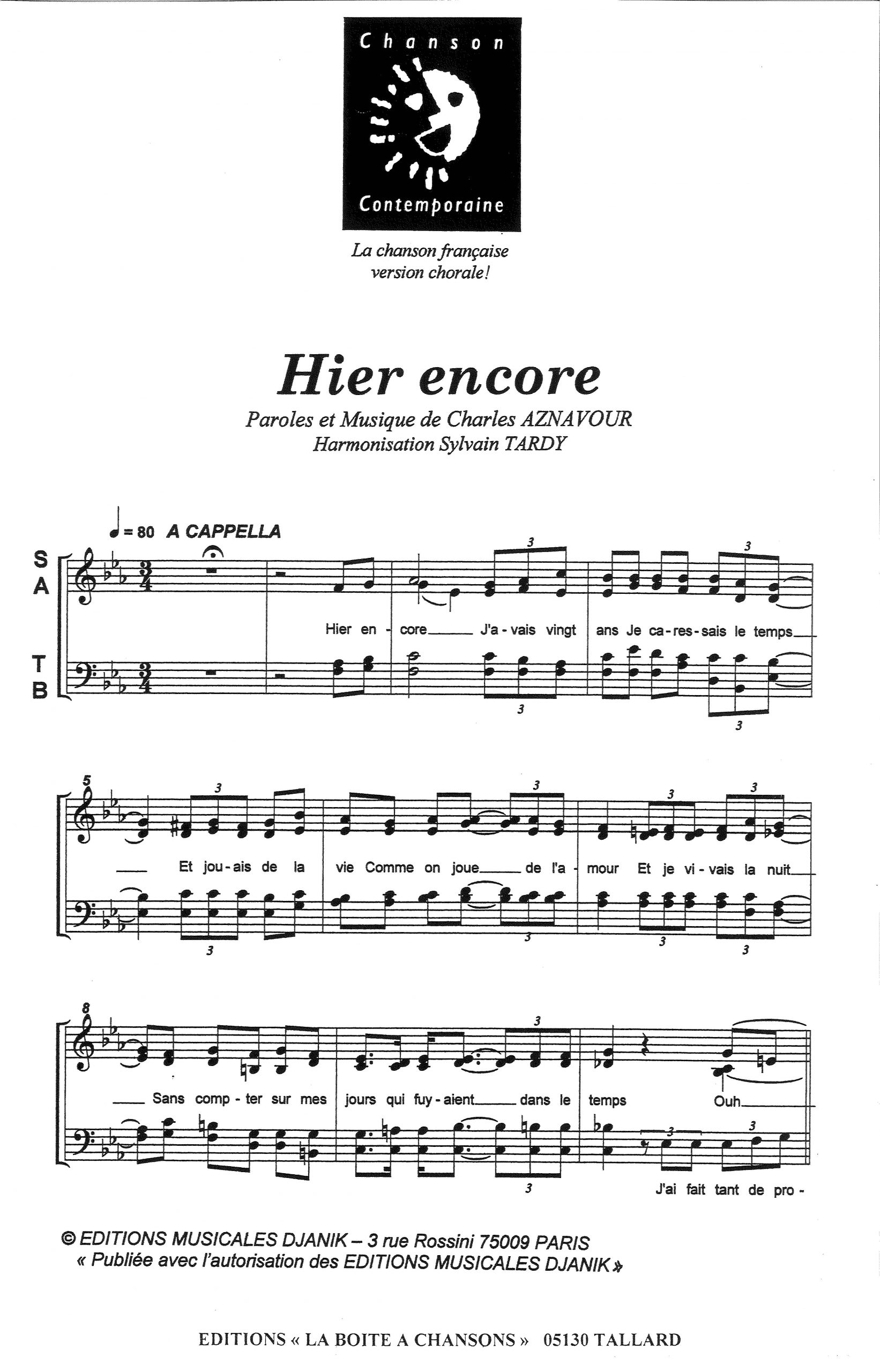 Paroles et musique de AZNAVOUR Harmonisation : Sylvain TARDY