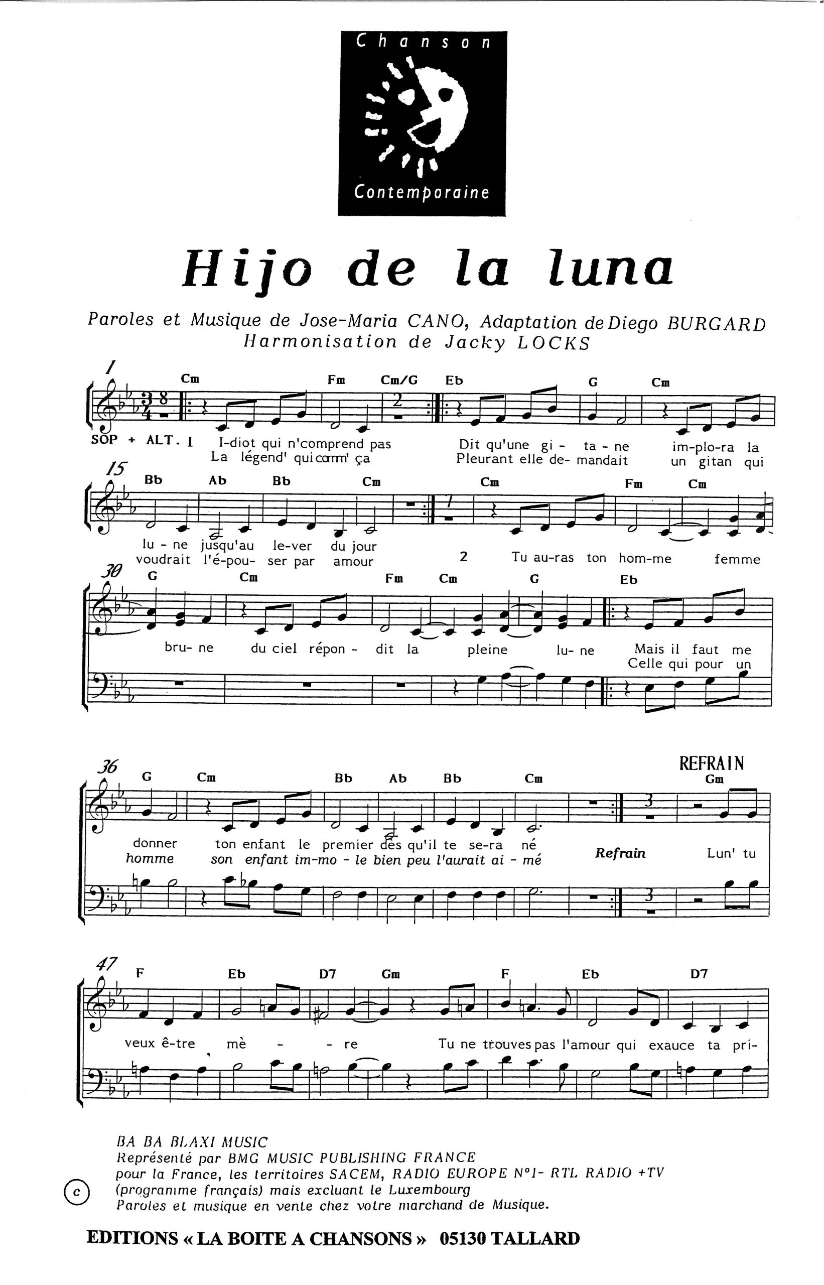 Paroles et musique de CANO/BURGARD Harmonisation : Jacky LOCKS