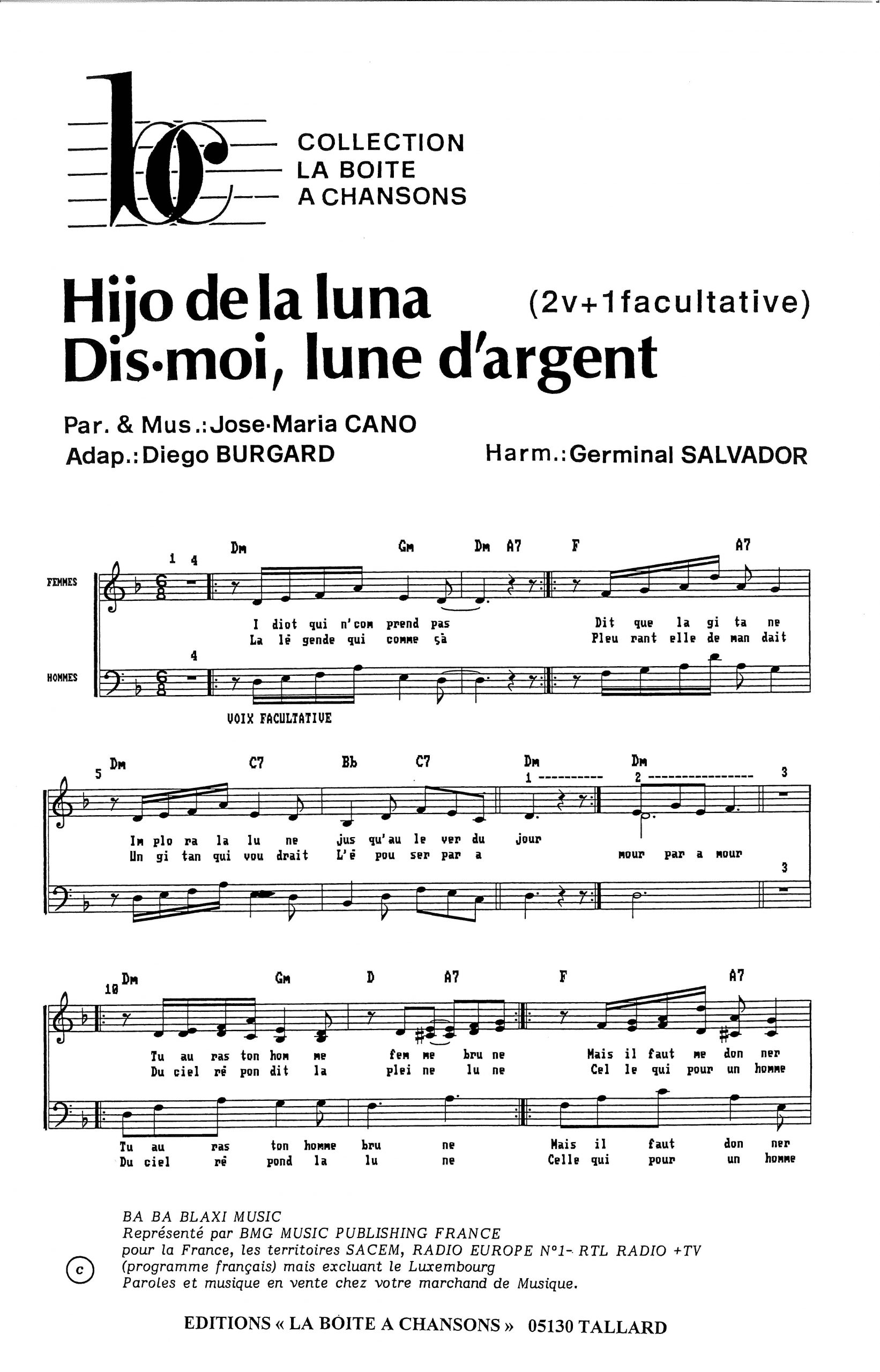 Paroles et musique de CANO/BURGARD Harmonisation : Germinal SALVADOR
