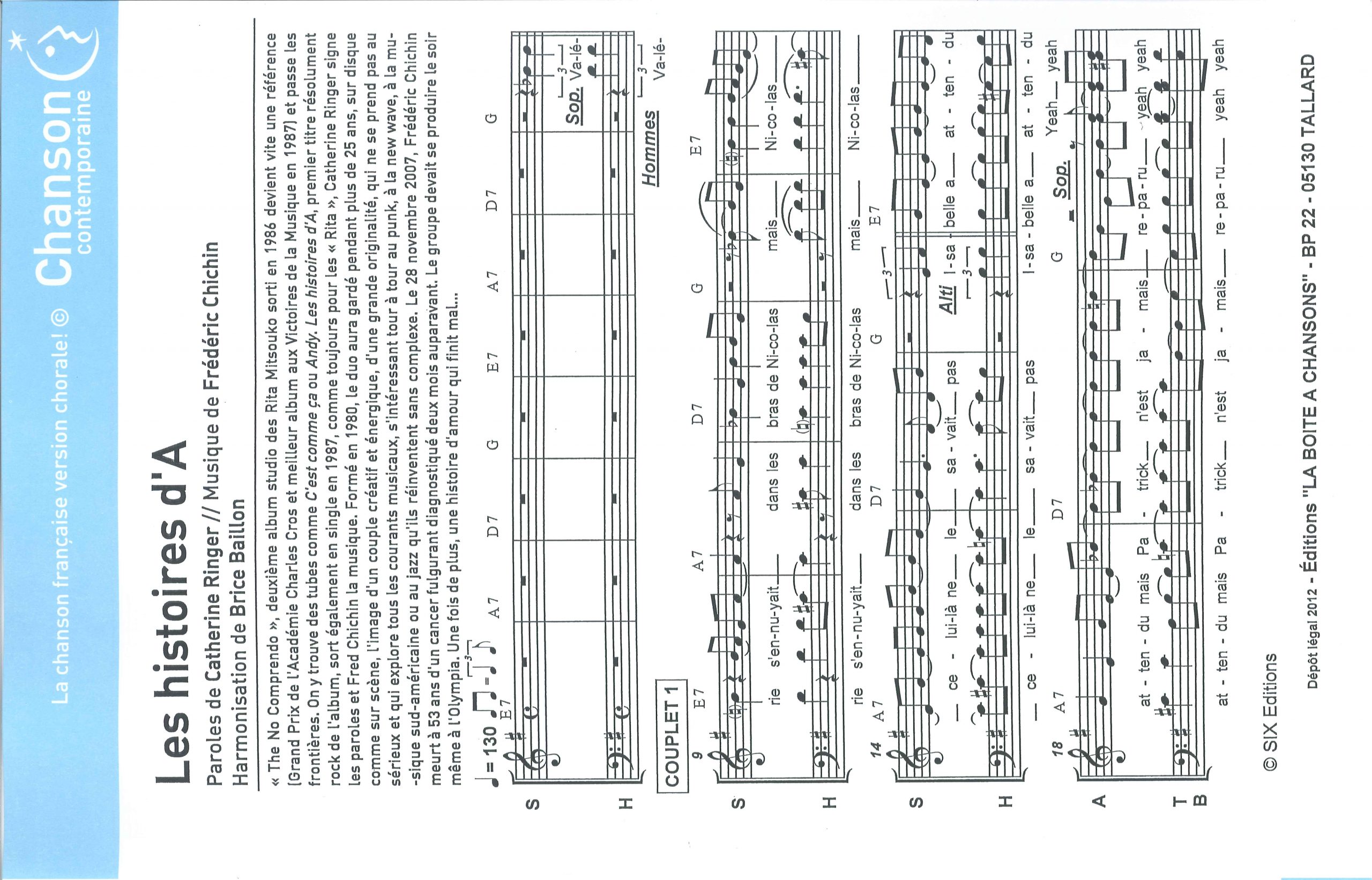 Paroles et musique de RINGER/CHICHIN Harmonisation : Brice BAILLON