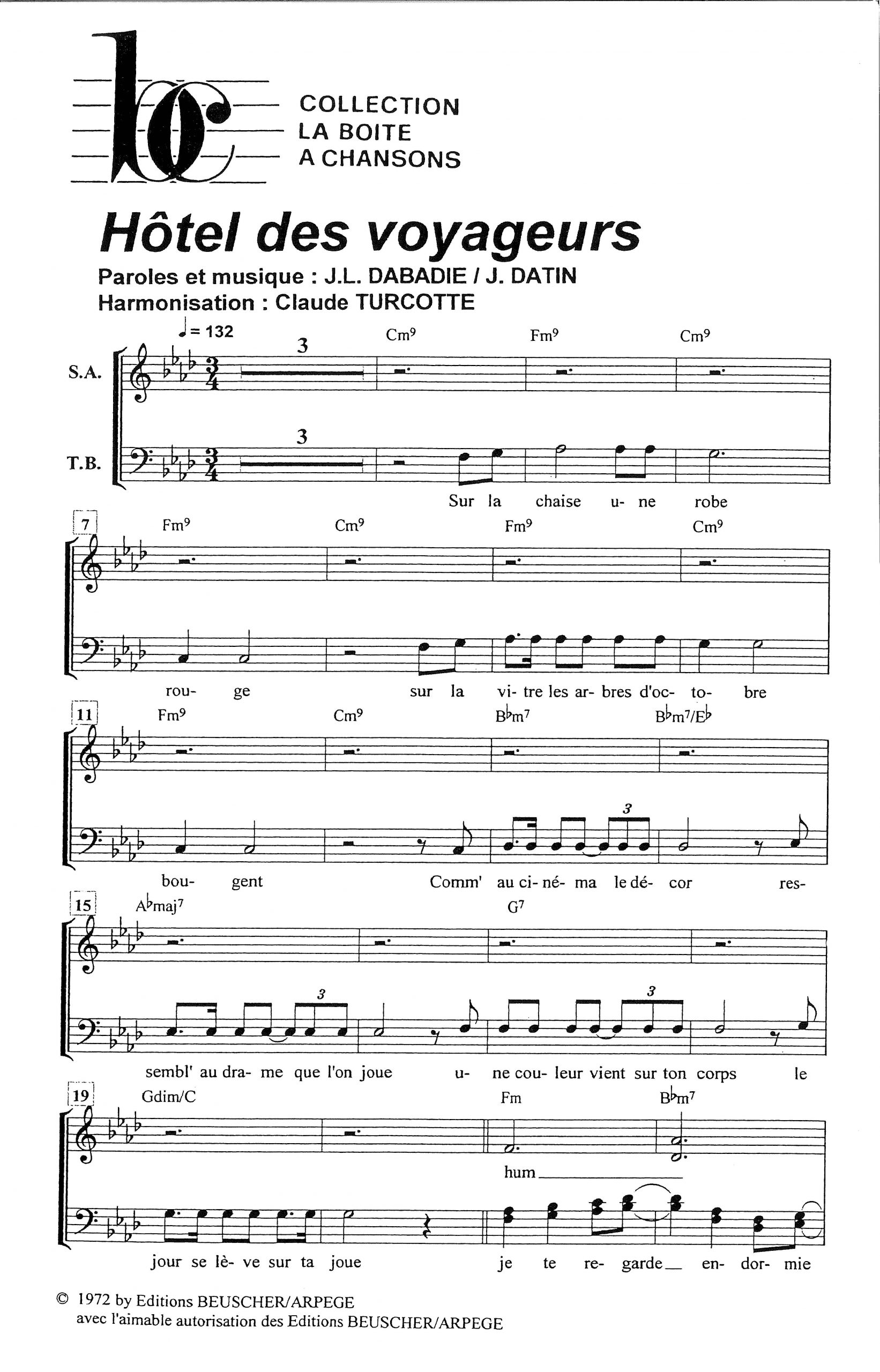 Paroles et musique de DABADIE/DATIN Harmonisation : Claude TURCOTTE