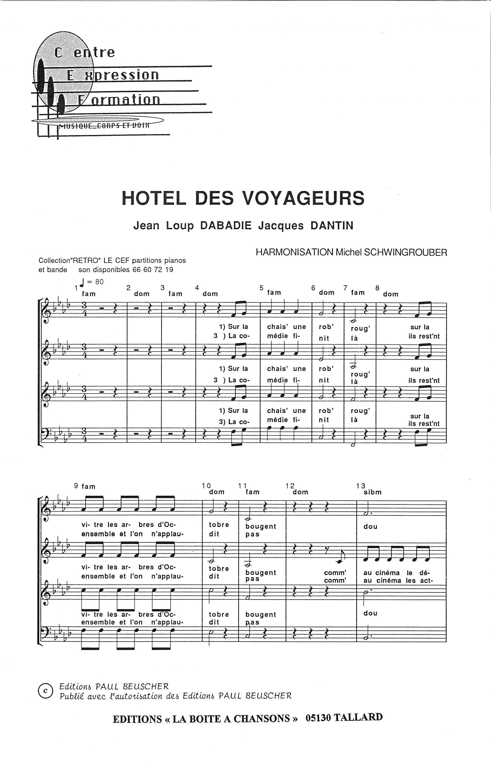 Paroles et musique de DABADIE/DATIN Harmonisation : Michel SCHWINGROUBER