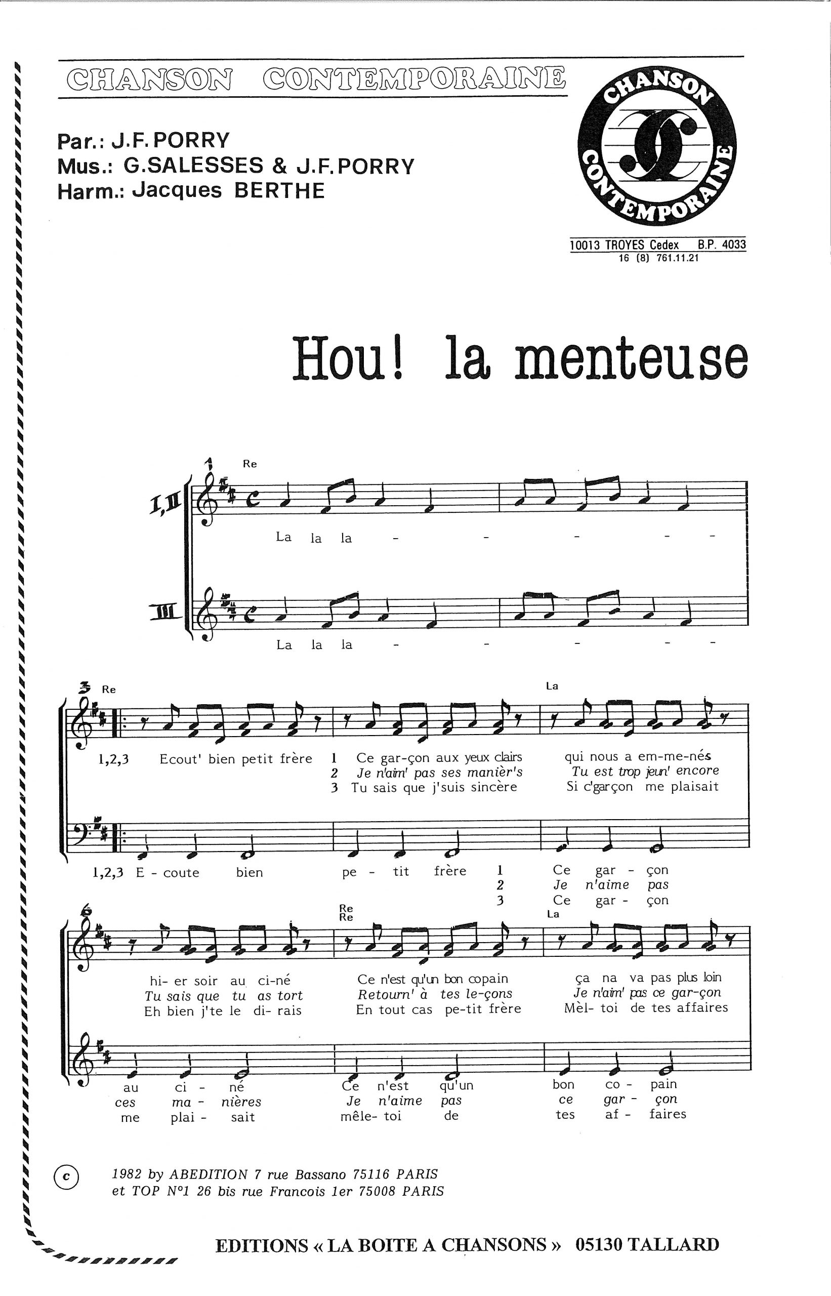 Paroles et musique de PORRY/SALESSES Harmonisation : Jacques BERTHE