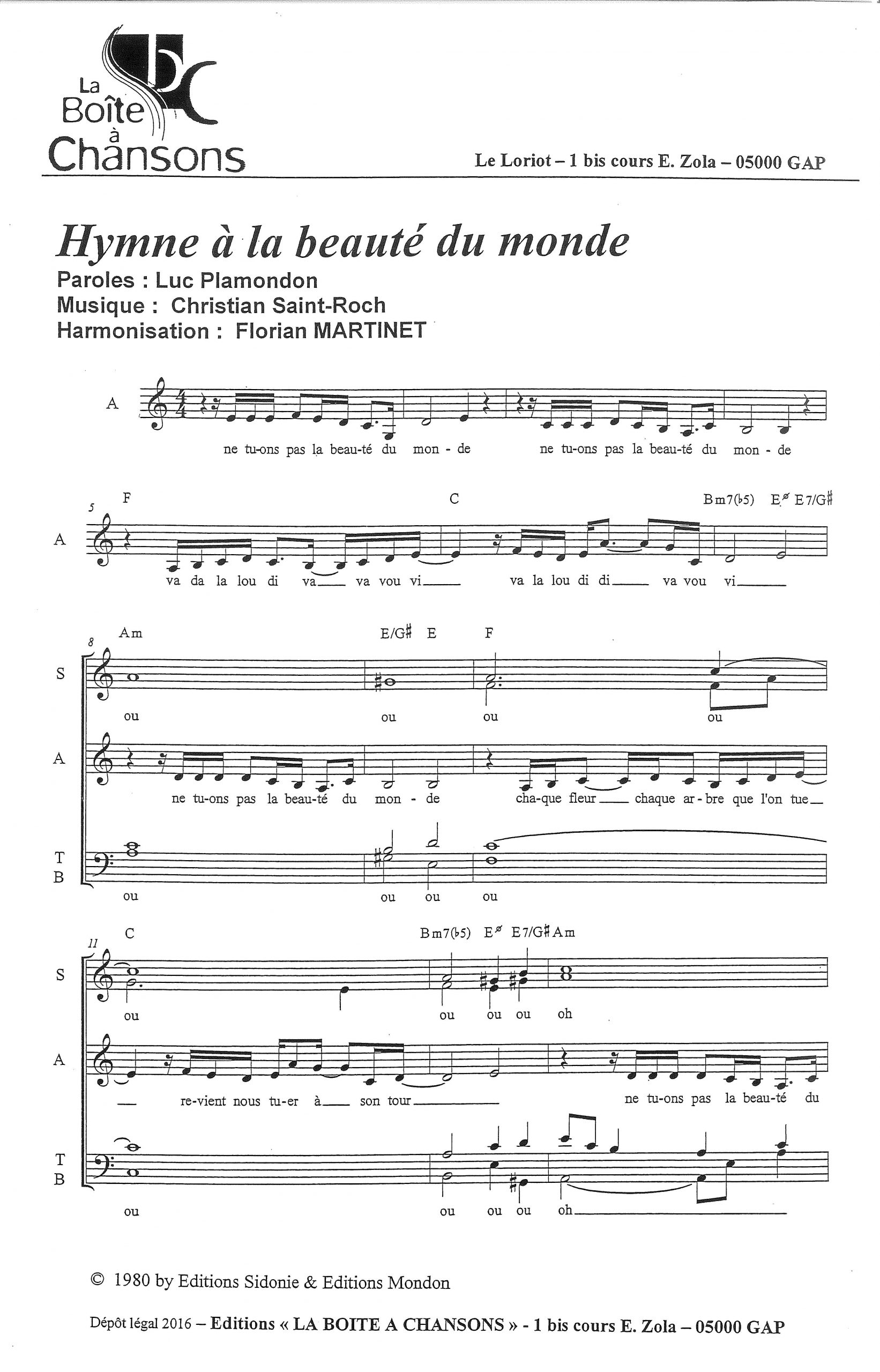 Paroles et musique : L. Plamondon / C. Saint Roch Harmonisation : Florian MARTINET