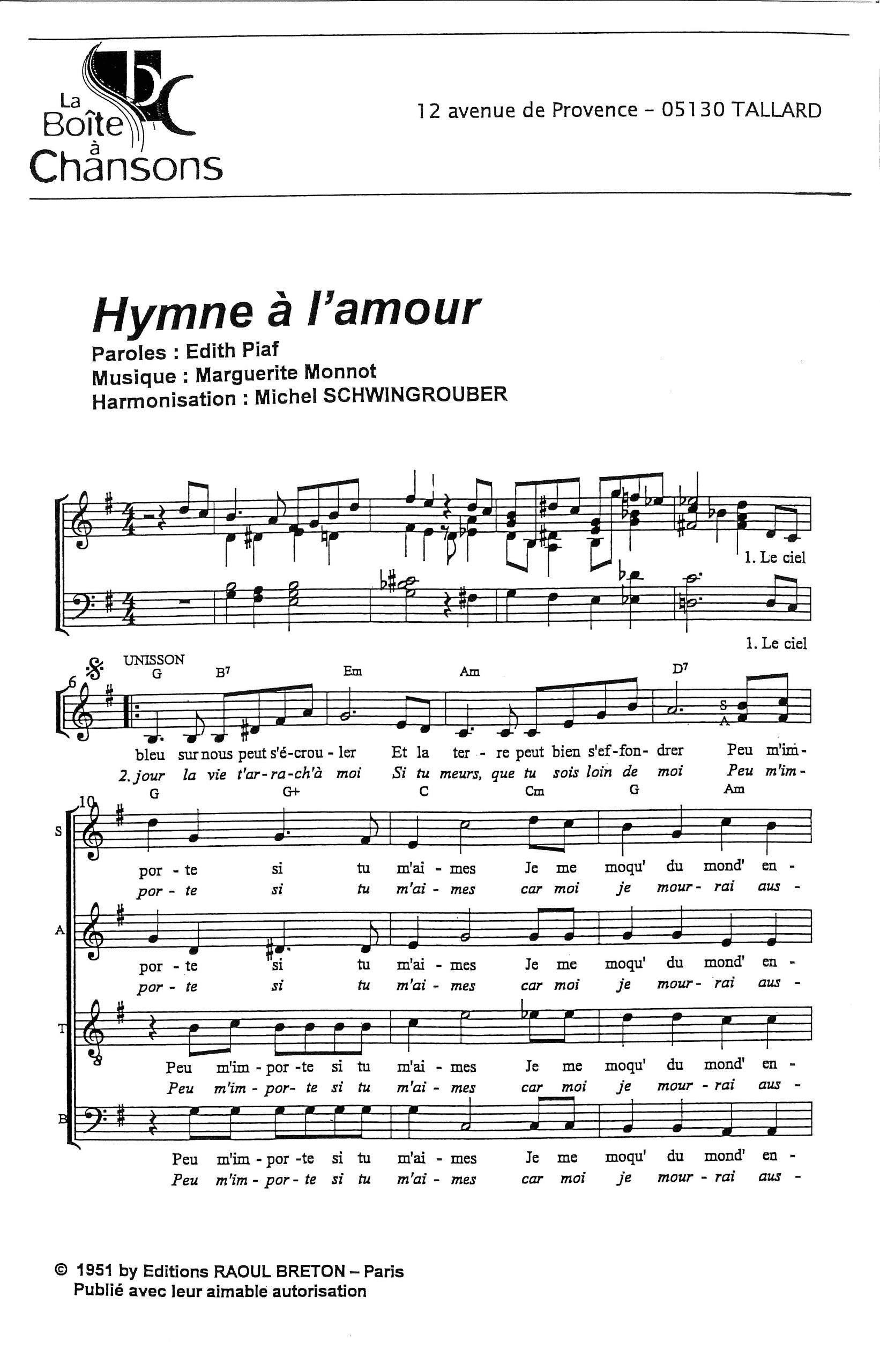 Paroles et musique de PIAF/MONNOT Harmonisation : Michel SCHWINGROUBER