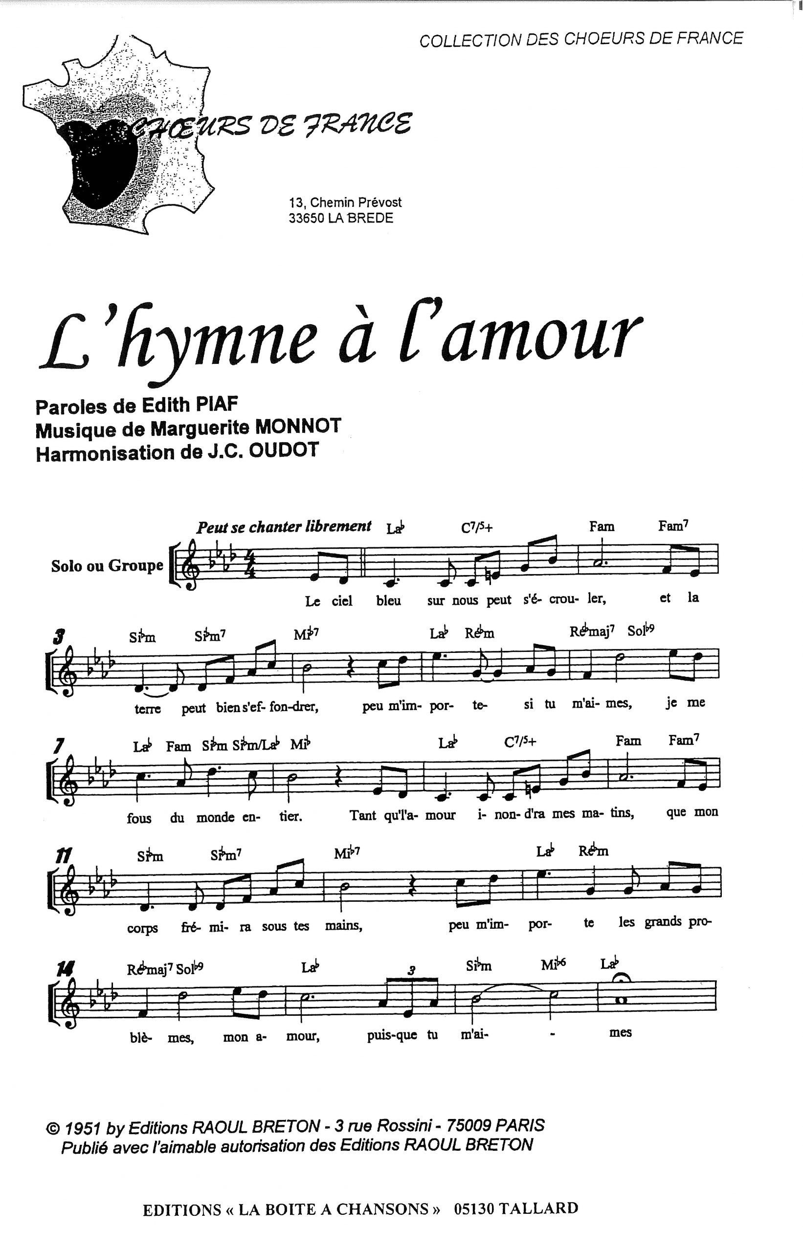 Paroles et musique de PIAF/MONNOT Harmonisation : Jean Claude OUDOT