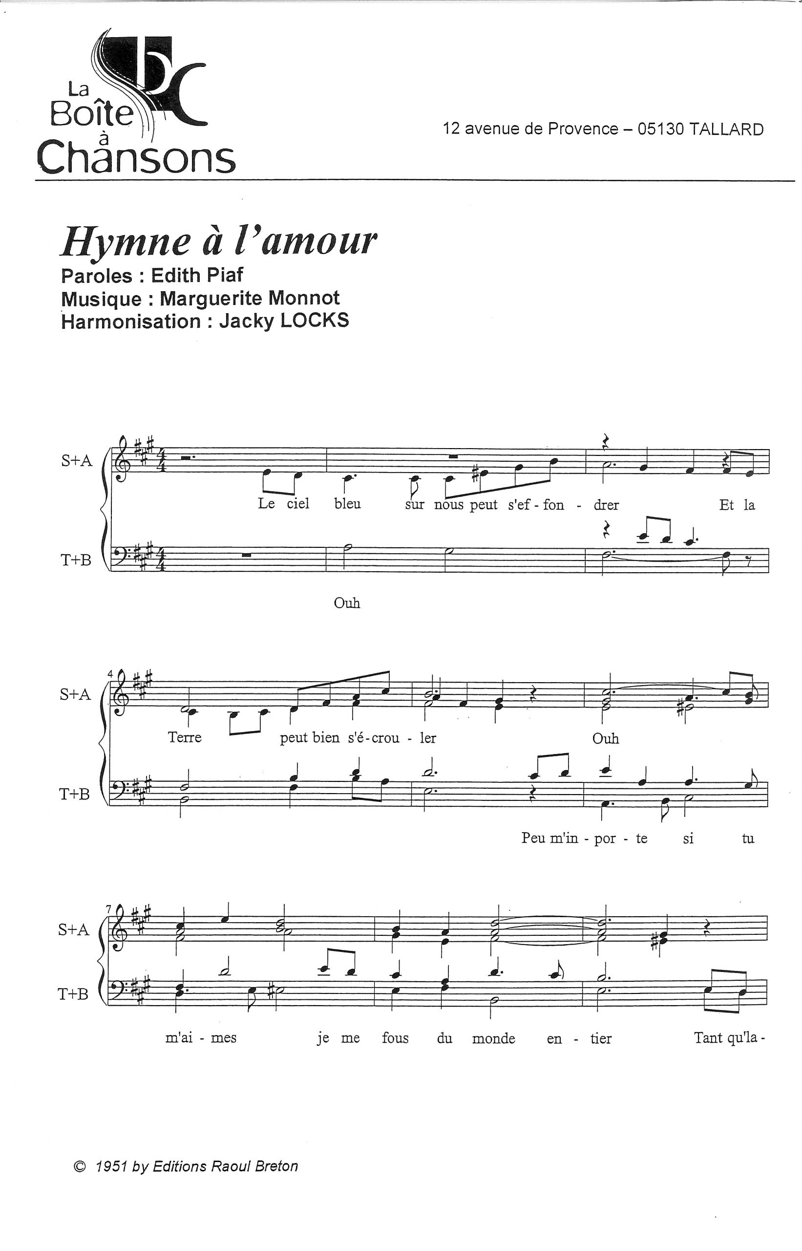 Paroles et musique : PIAF et MONNOT Harmonisation : Jacky LOCKS