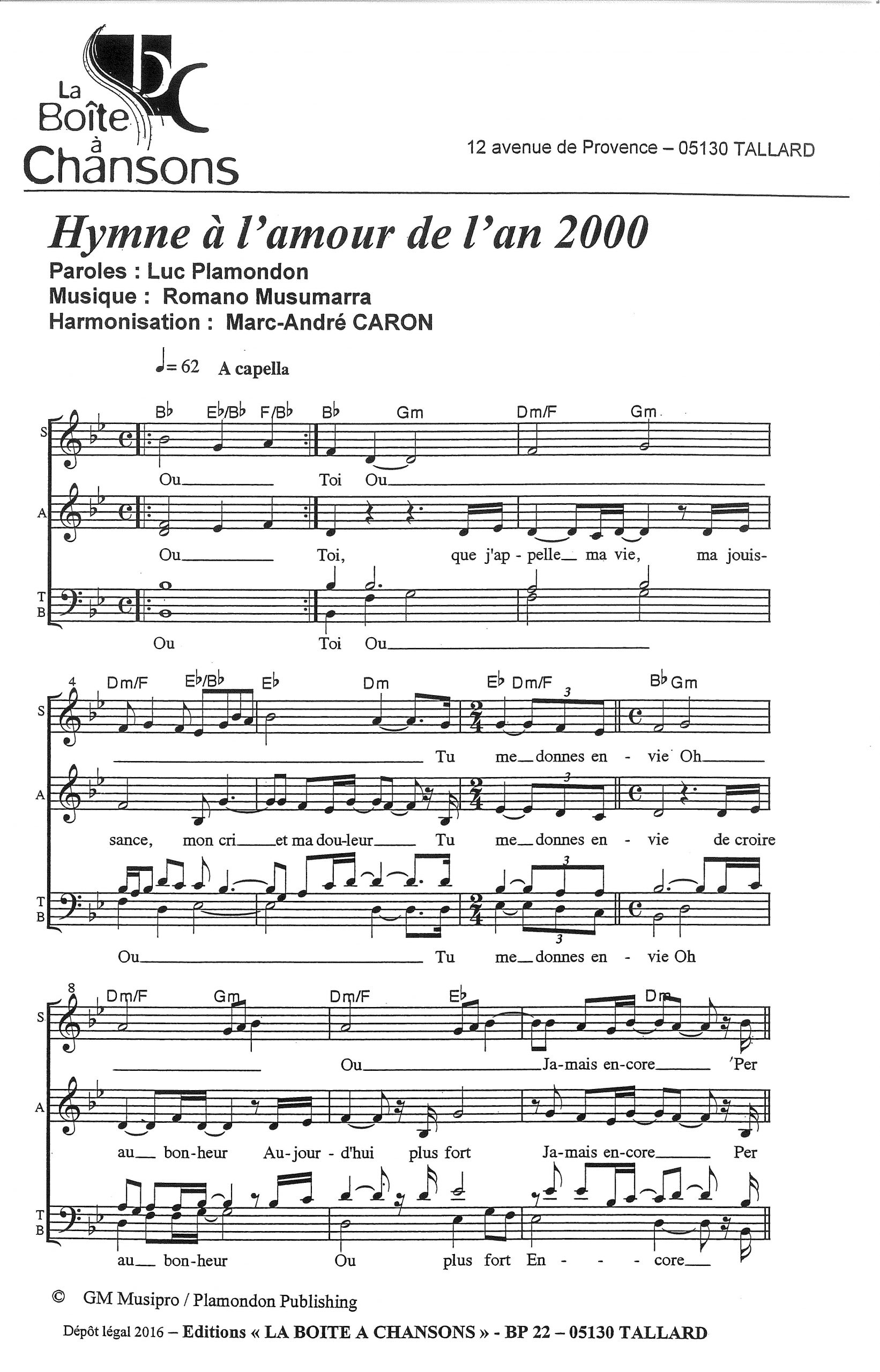 Paroles et musique : L. Plamondon / R. Musumarra Harmonisation : Marc André CARON