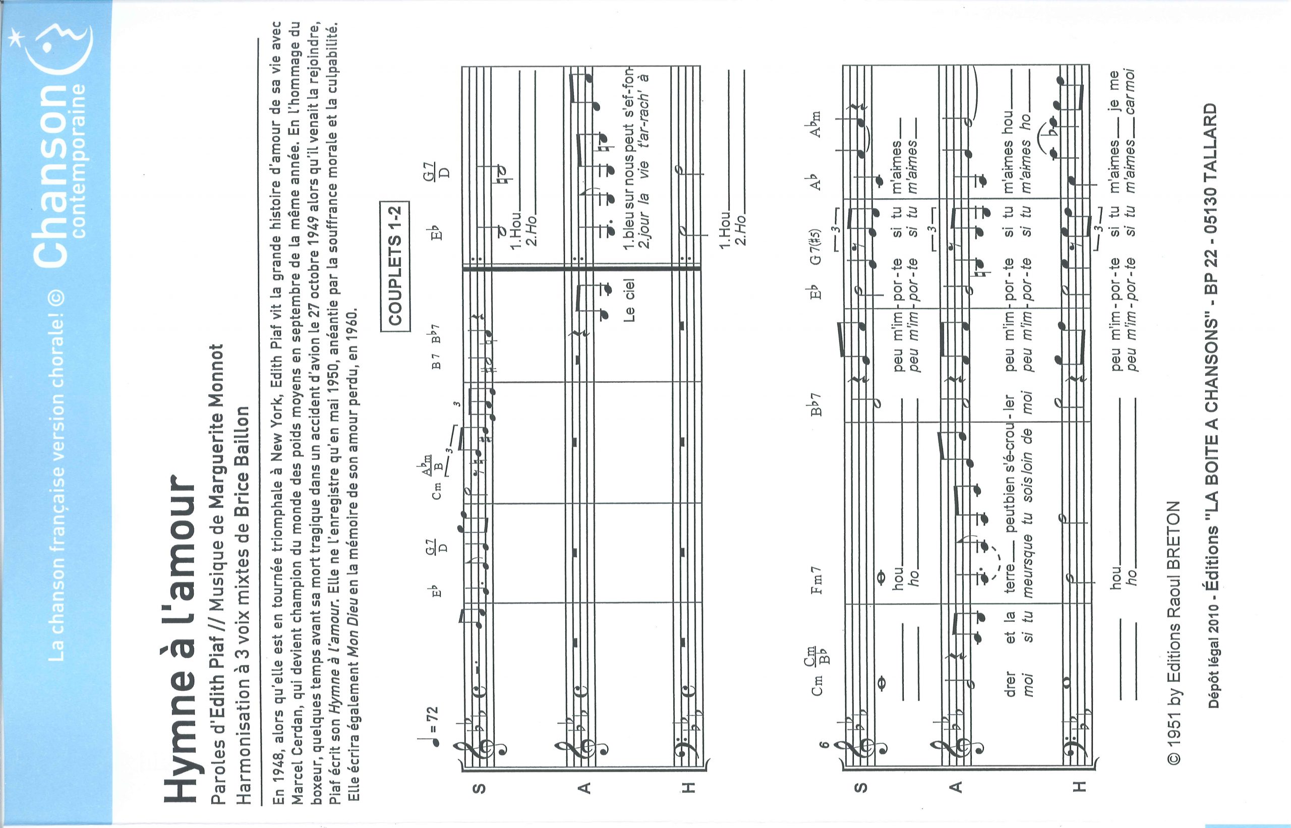 Paroles et musique de MONNOT/PIAF Harmonisation : Brice BAILLON