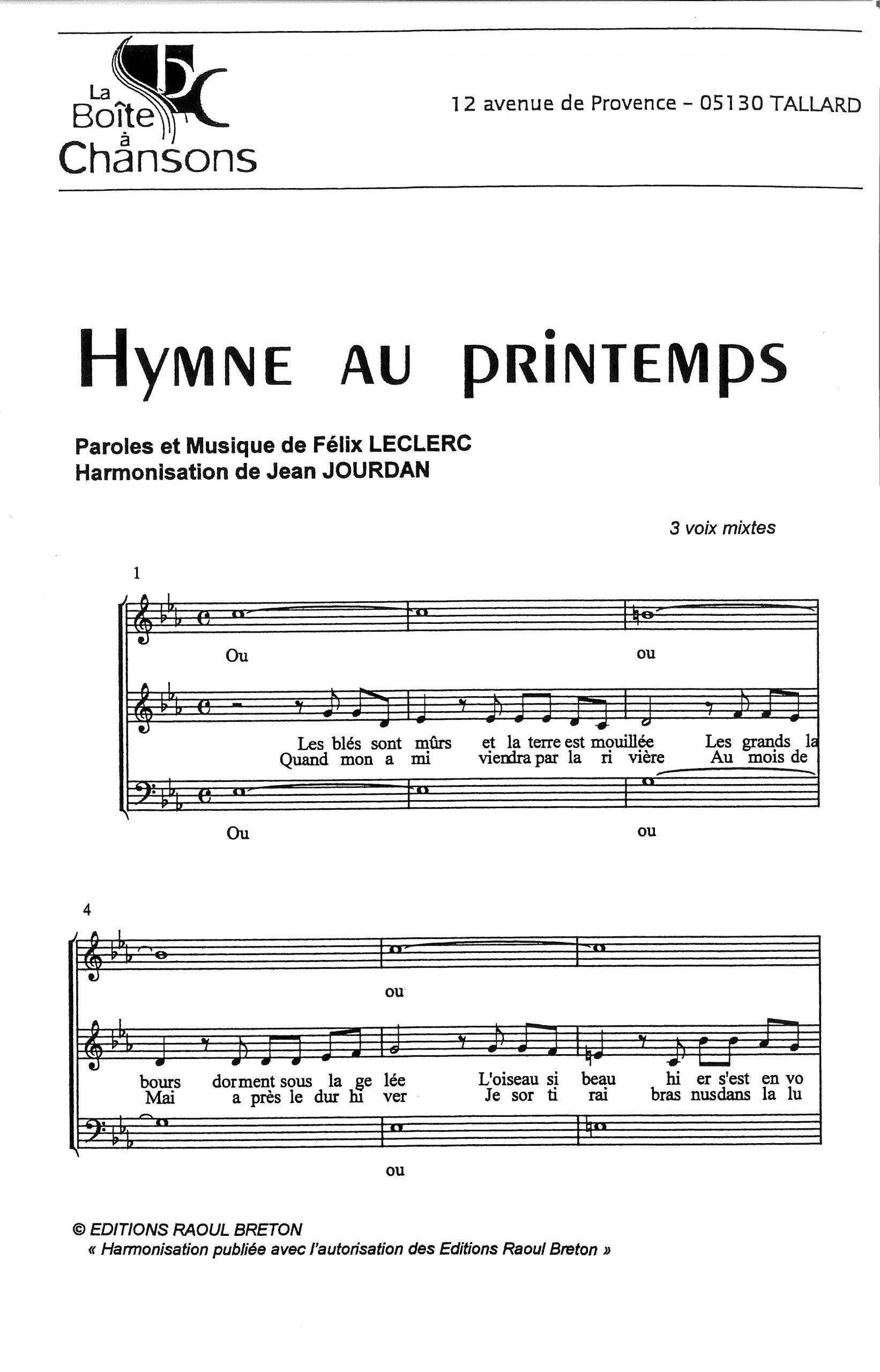Paroles et musique de LECLERC Harmonisation : Jean JOURDAN