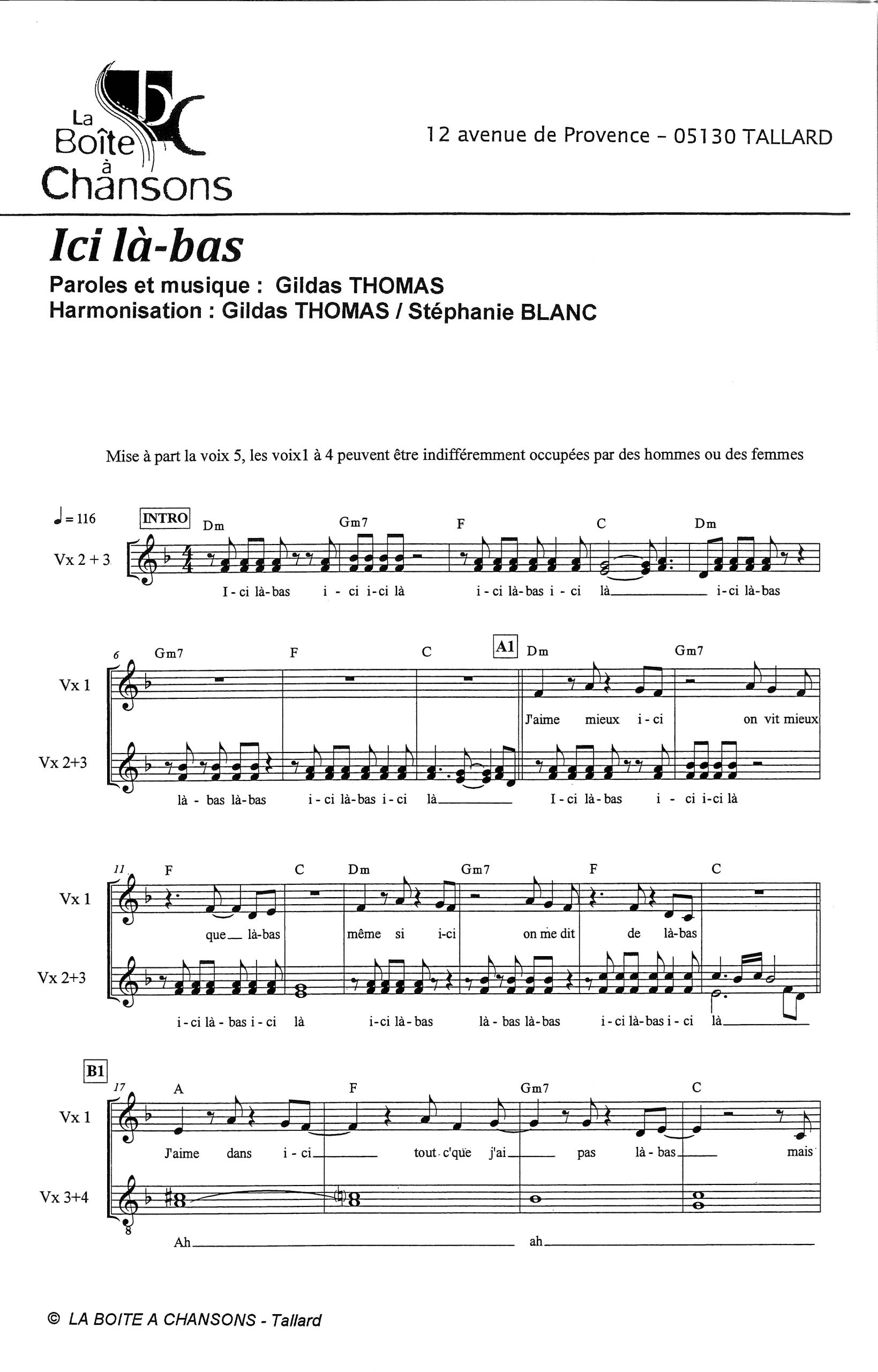 Paroles et musique de THOMAS Harmonisation : Gildas THOMAS / S. BLANC