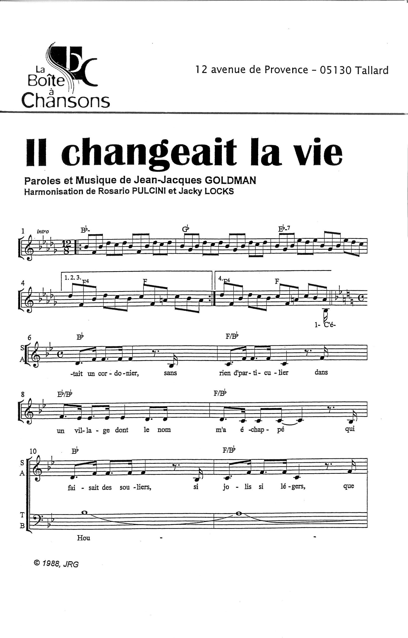 Paroles et musique de GOLDMAN Harmonisation :Rosario PULCINI