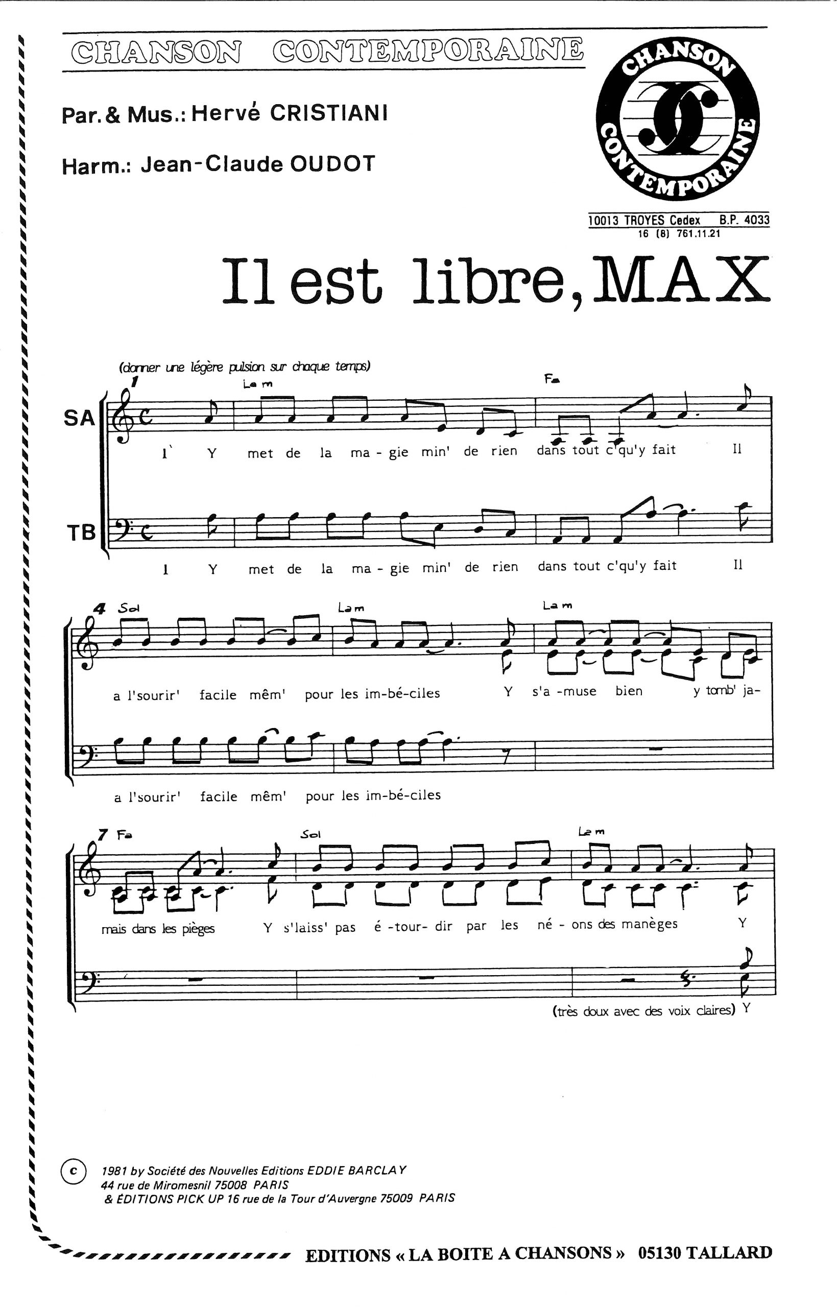 Paroles et musique de CRISTIANI Harmonisation : Jean Claude OUDOT