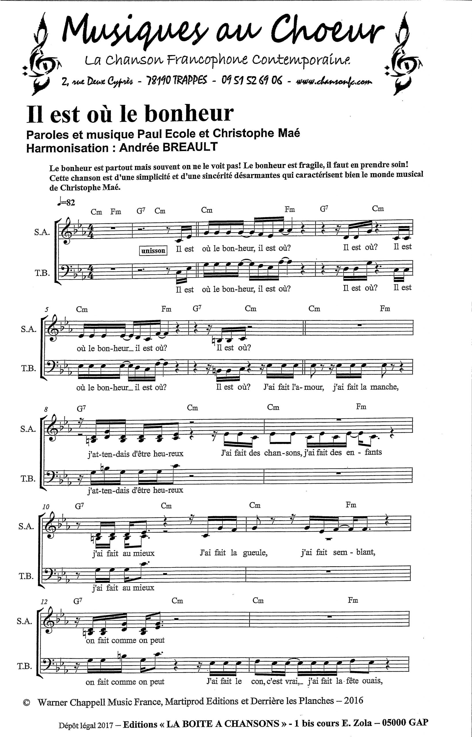 Paroles et musique : P. Ecole / C. Maé Harmonisation : Andrée BREAULT