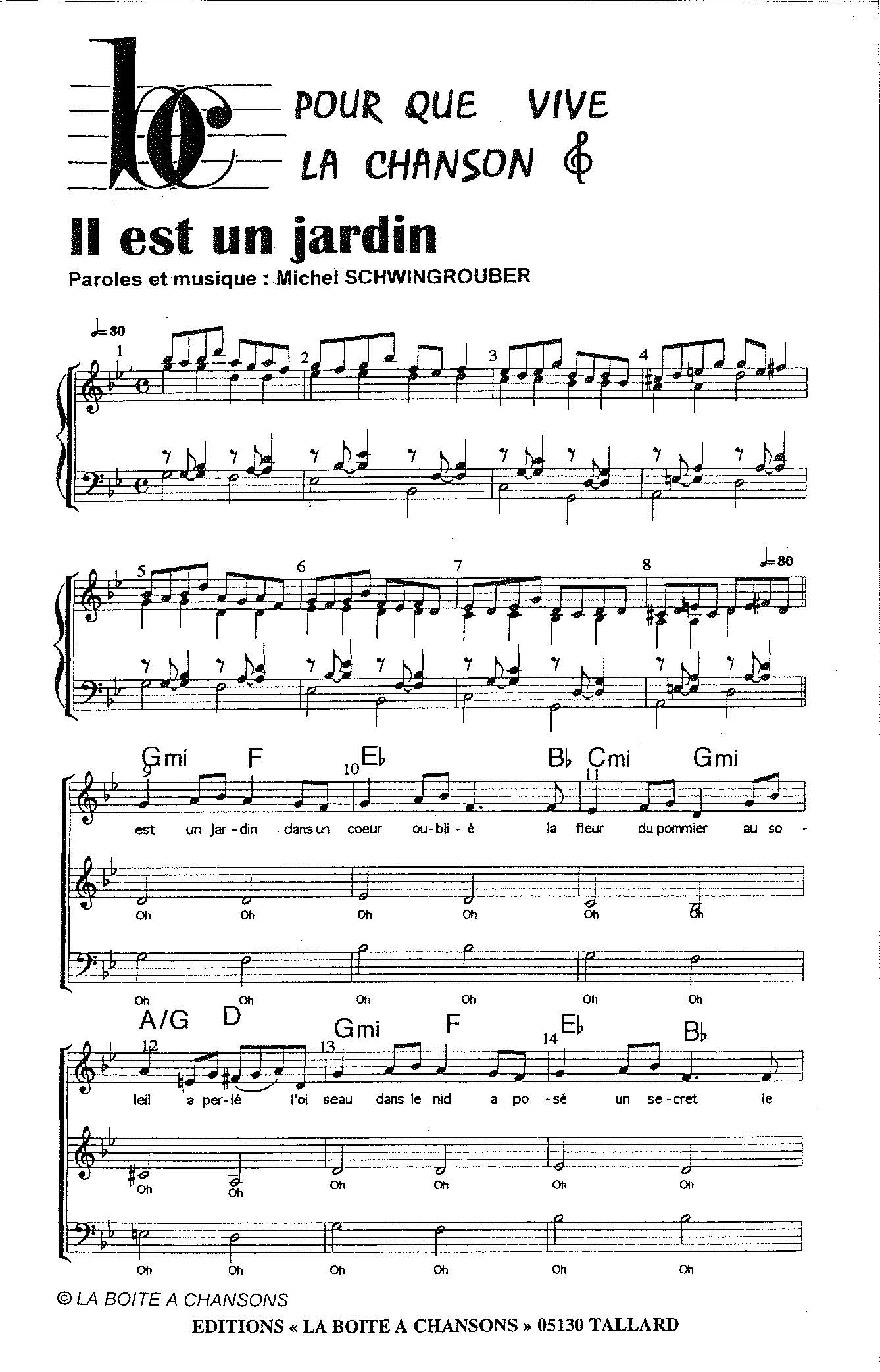 Paroles et musique de SCHWINGROUBER Harmonisation : Michel SCHWINGROUBER