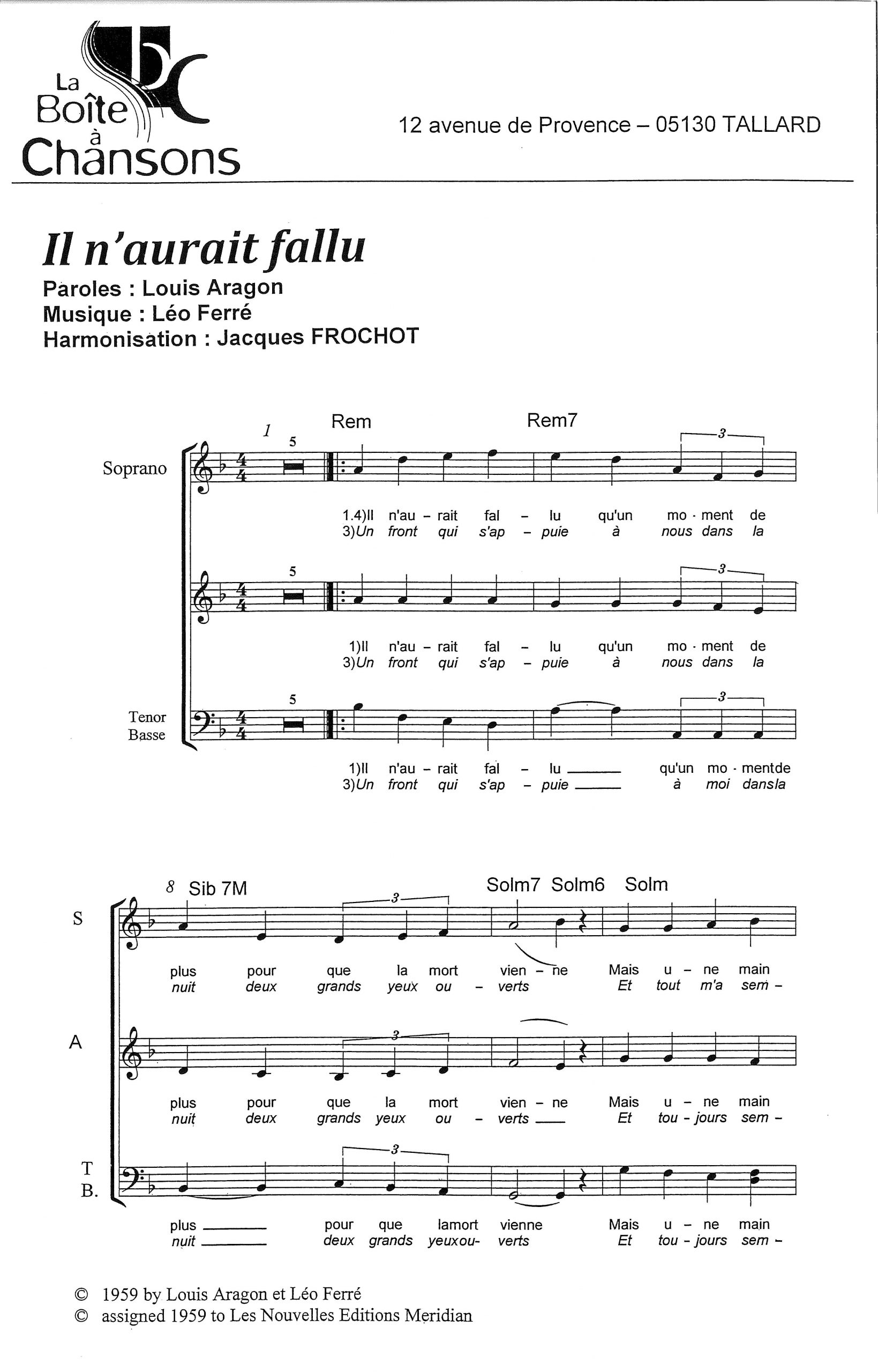 Paroles et musique de ARAGON/FERRE Harmonisation : Jacques FROCHOT