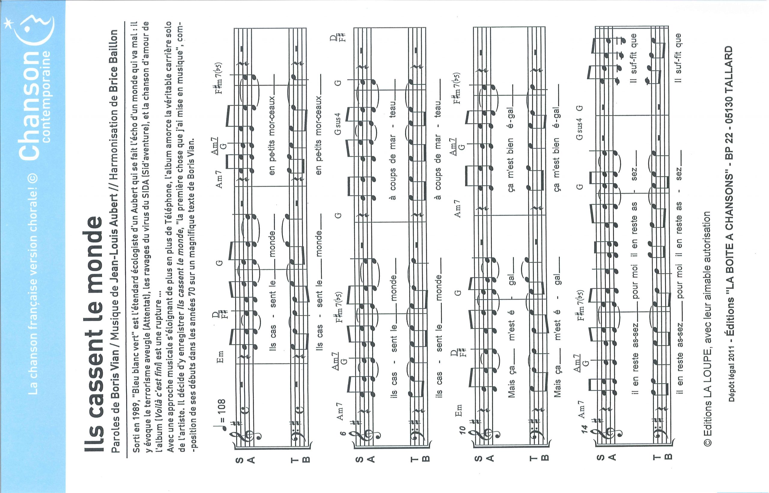 Paroles et musique de AUBERT Harmonisation : Brice BAILLON