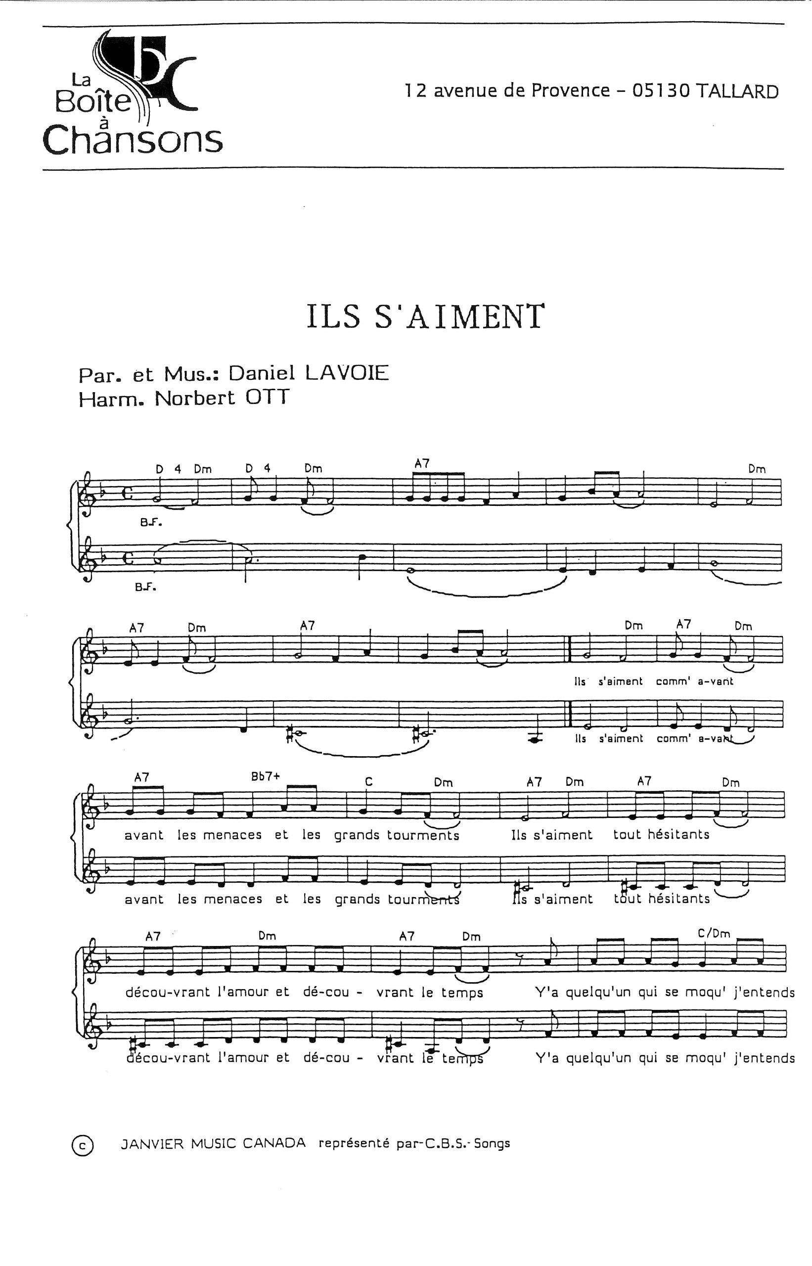 Paroles et musique de LAVOIE/DESHAIME Harmonisation : Norbert OTT