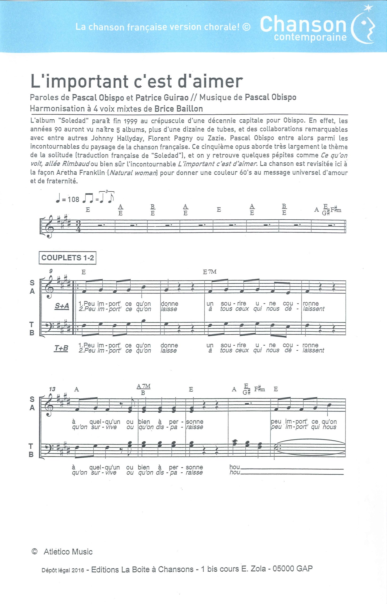 Paroles et musique : Guirao / Obispo Harmonisation : Brice BAILLON
