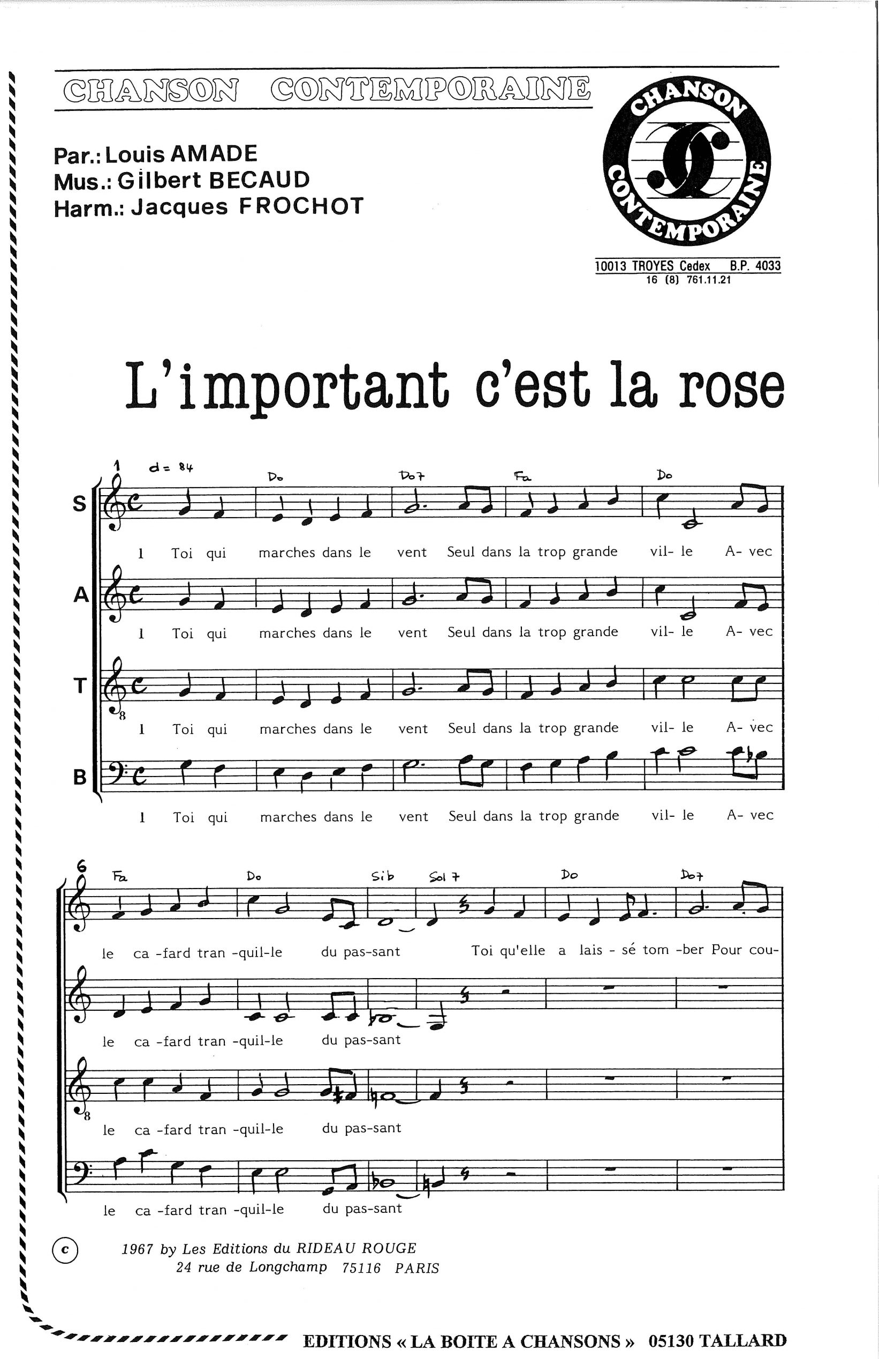Paroles et musique de AMADE/BECAUD Harmonisation : Jacques FROCHOT