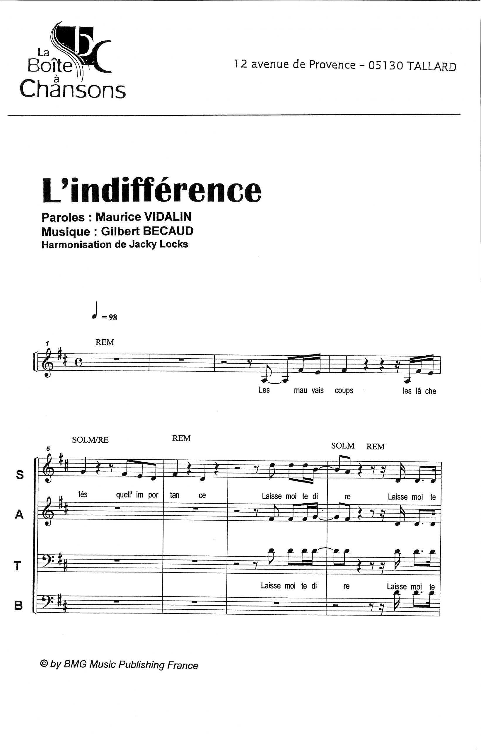 Paroles et musique de VIDALIN/BECAUD Harmonisation : Germinal SALVADOR