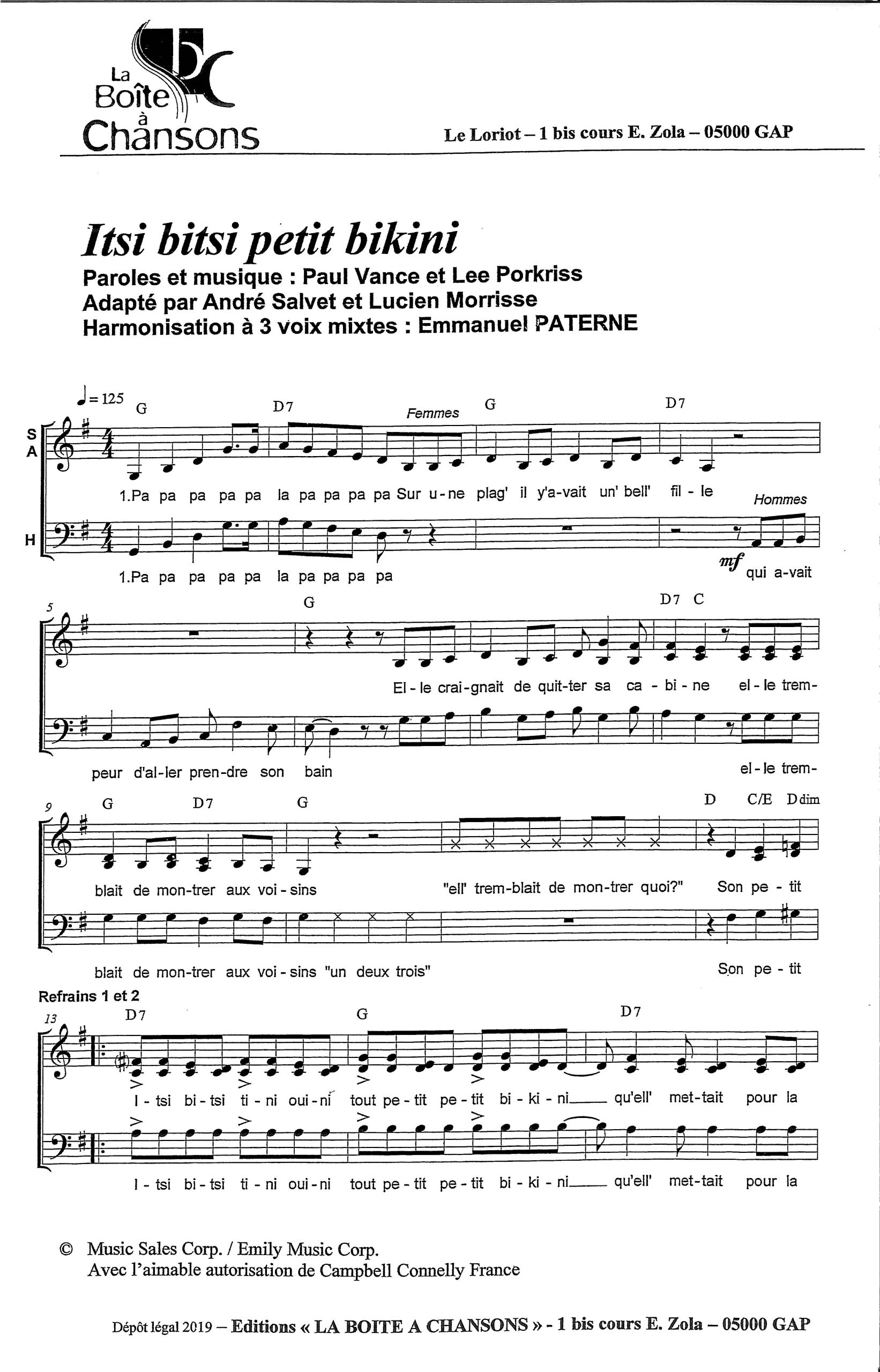 Paroles et musique : P. Vance / L. Porkriss Harmonisation : Emmanuel Paterne