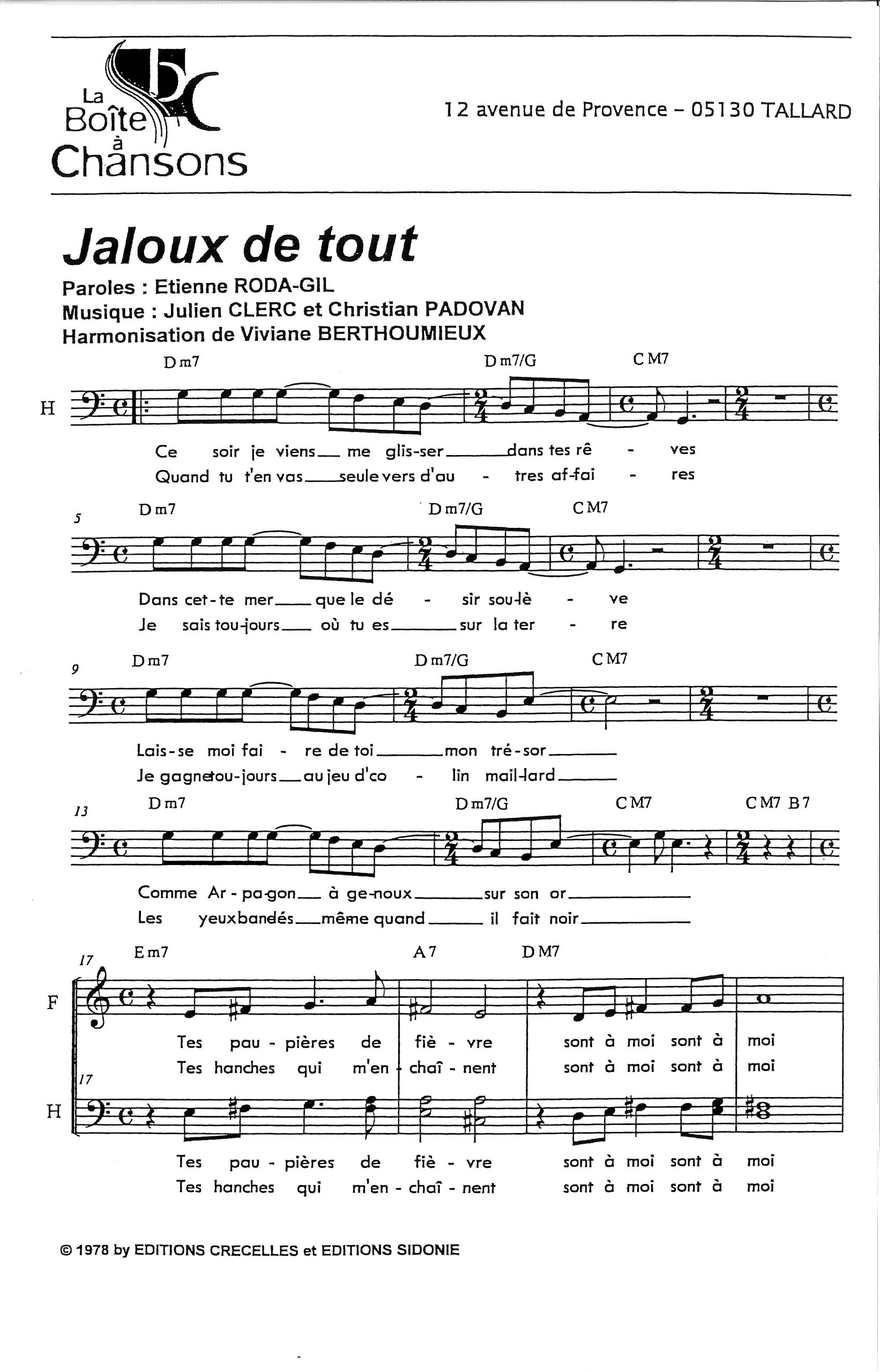 Paroles et musique de RODA GIL / CLERC / PADOVAN Harmonisation : Viviane BERTHOUMIEUX
