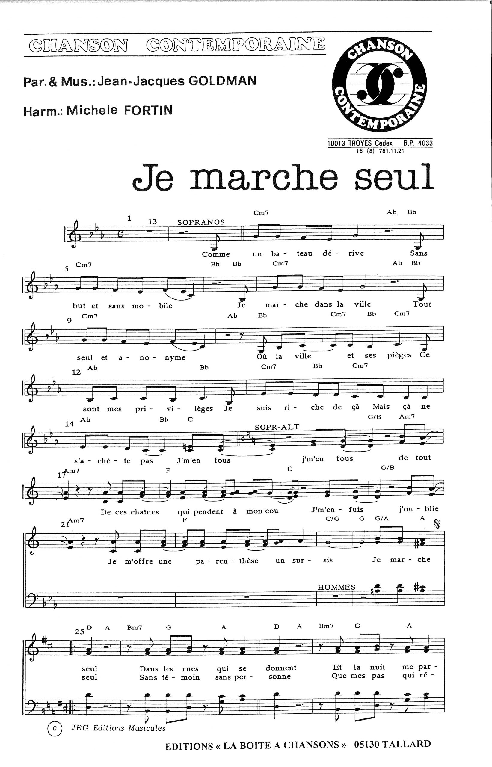 Paroles et musique de GOLDMAN Harmonisation : FORTIN