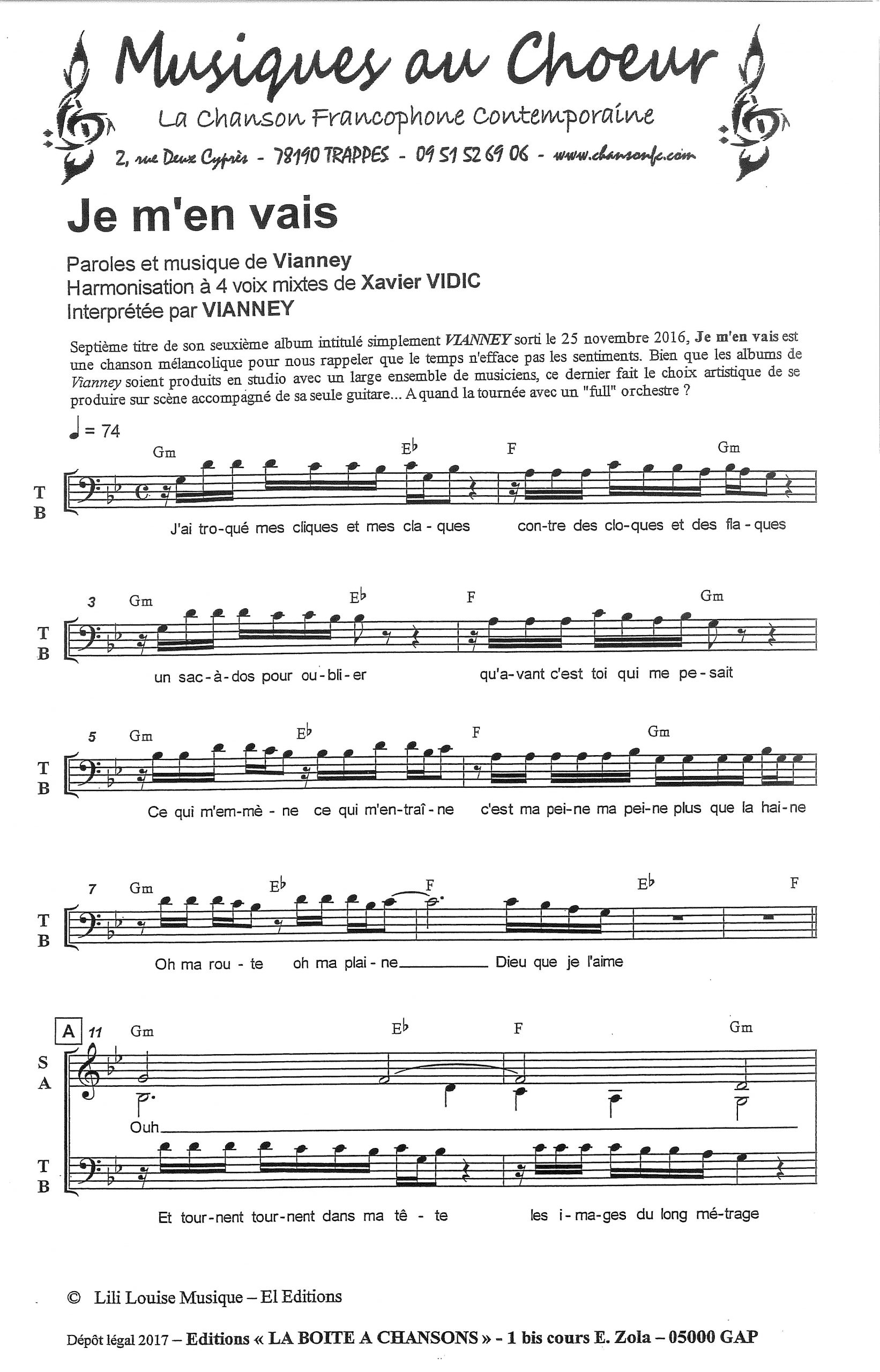 Paroles et musique / Vianney Harmonisation : Xavier VIDIC