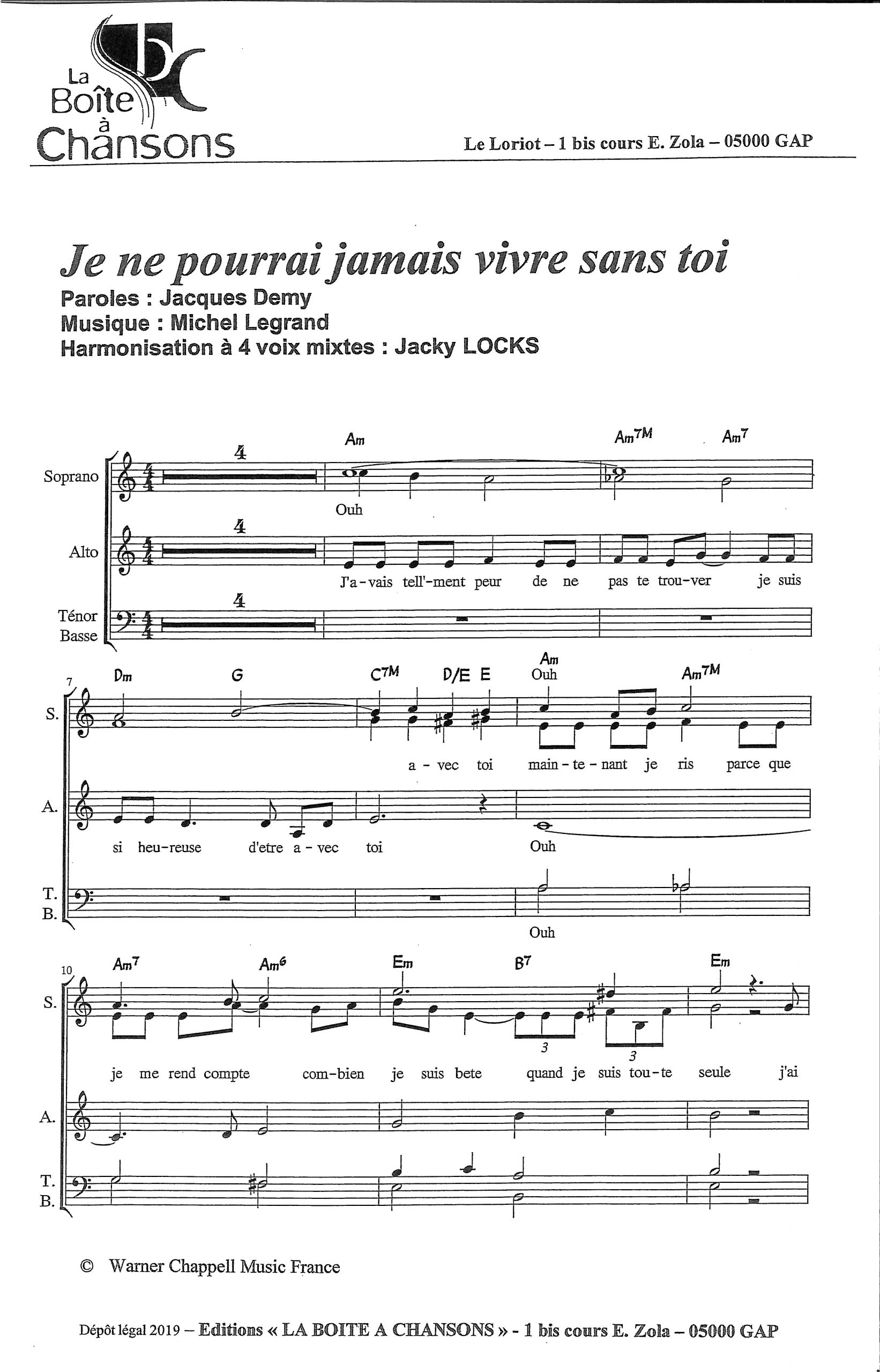 Paroles et musique : J. Demy / M. Legrand Harmonisation : Jacky Locks