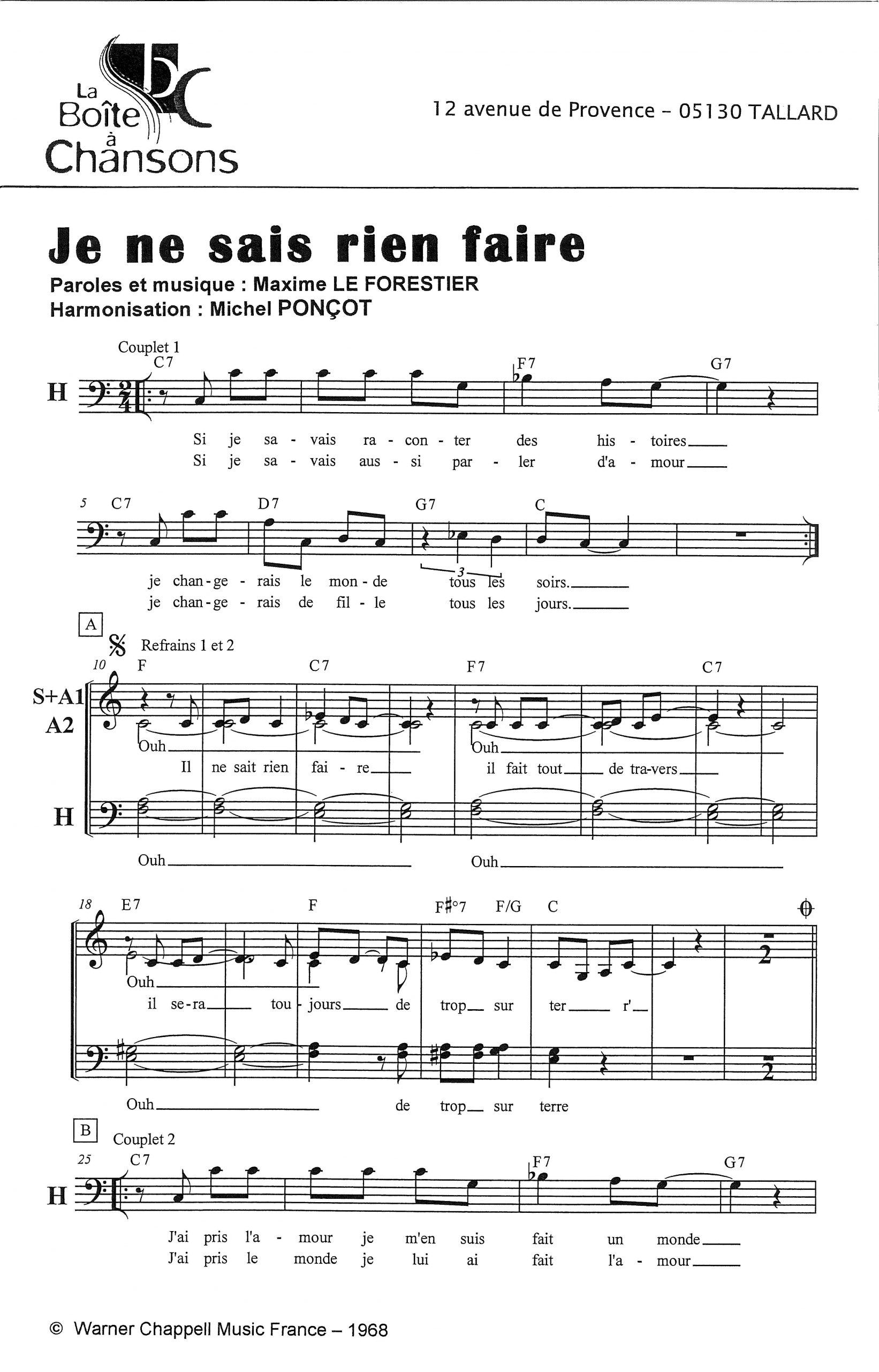 Paroles et musique de LE FORESTIER Harmonisation : Michel PONCOT