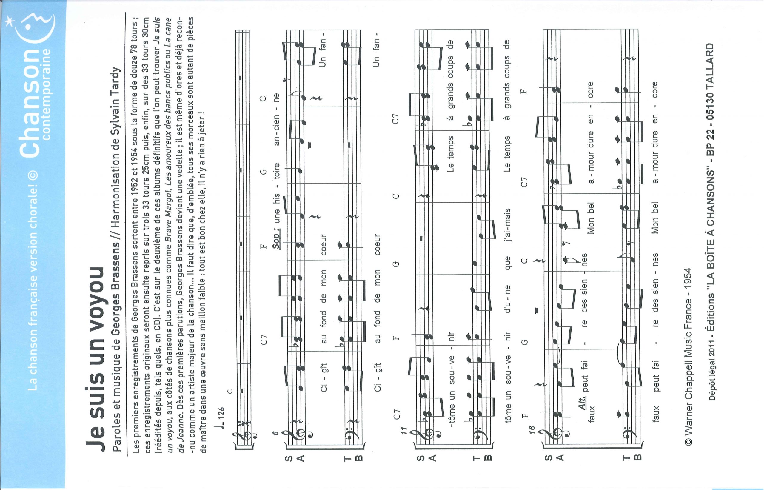Paroles et musique de BRASSENS Harmonisation : Sylvain TARDY