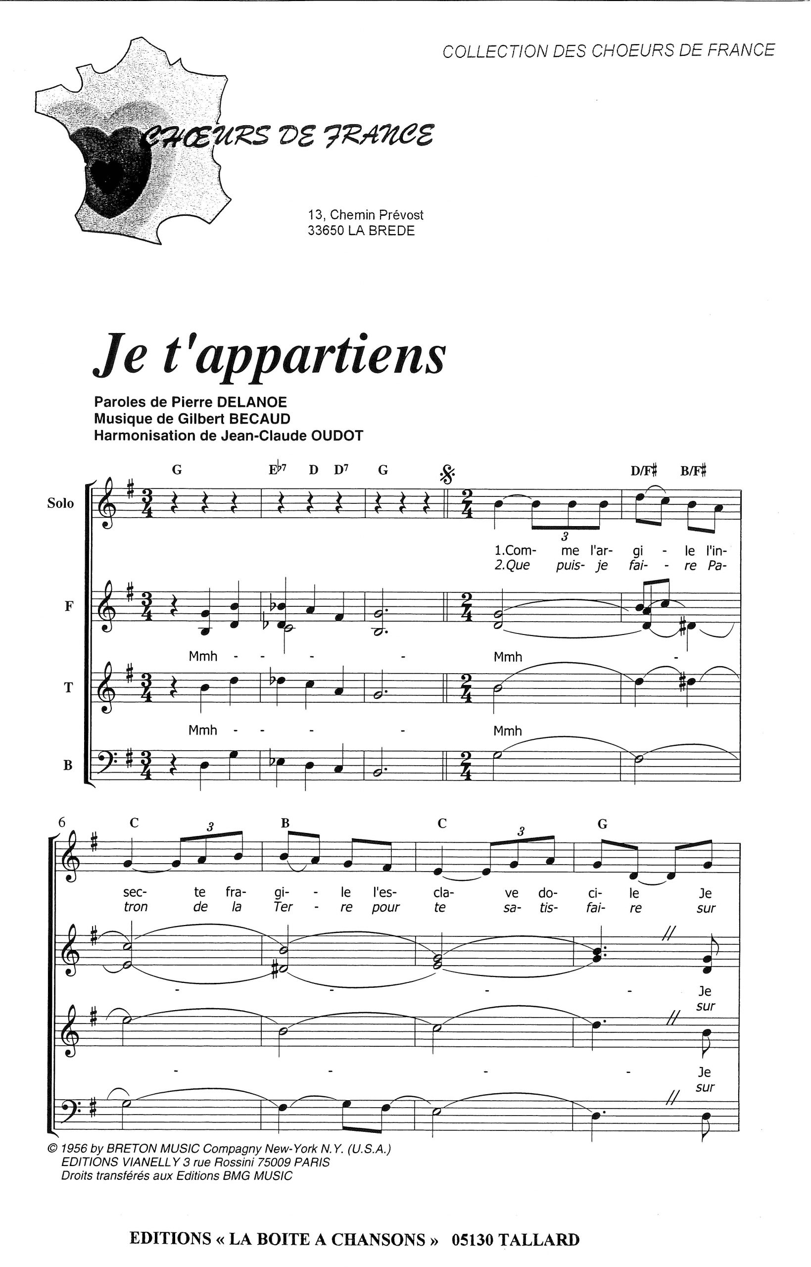 Paroles et musique de DELANOE/BECAUD Harmonisation : Jean Claude OUDOT