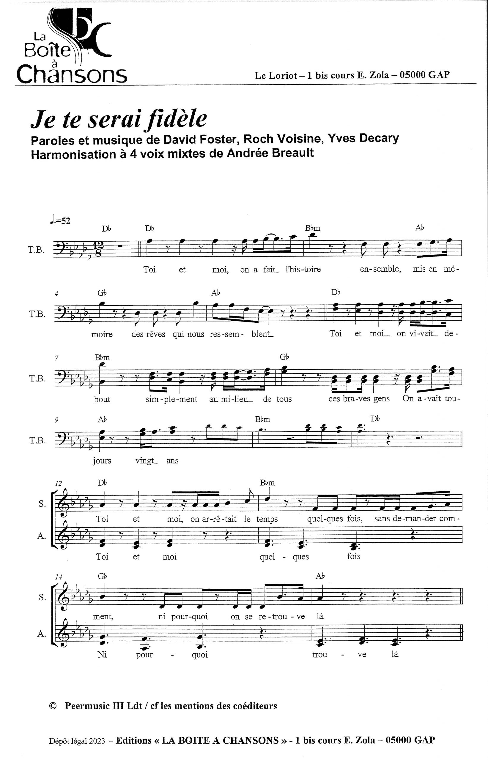 Paroles et musique : D. Foster / R.Voisine / Y. Decary Harmonisation : Andrée Breault