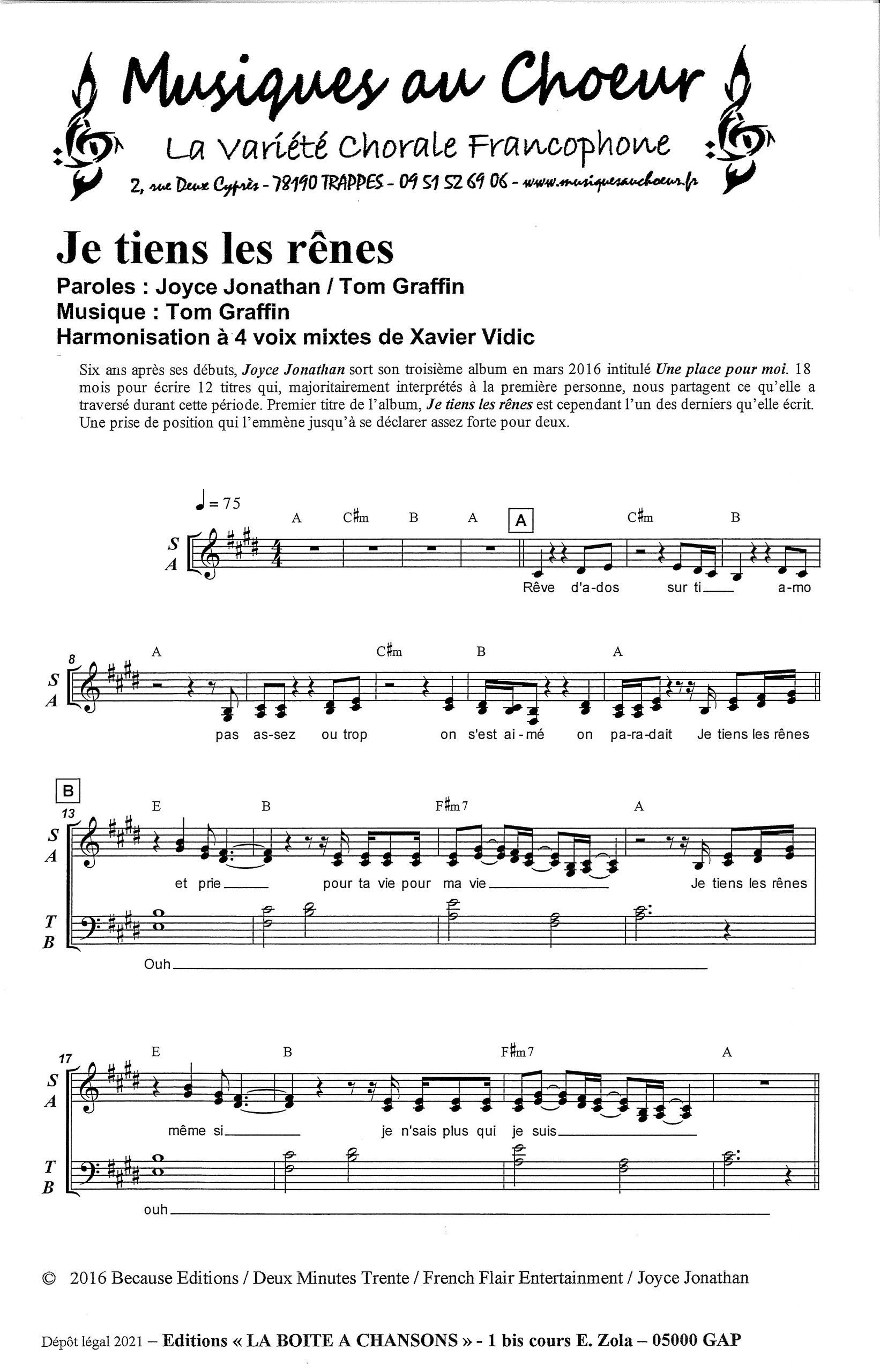Paroles et musique : J. Jonathan / T. Graffin Harmonisation : Xavier Vidic