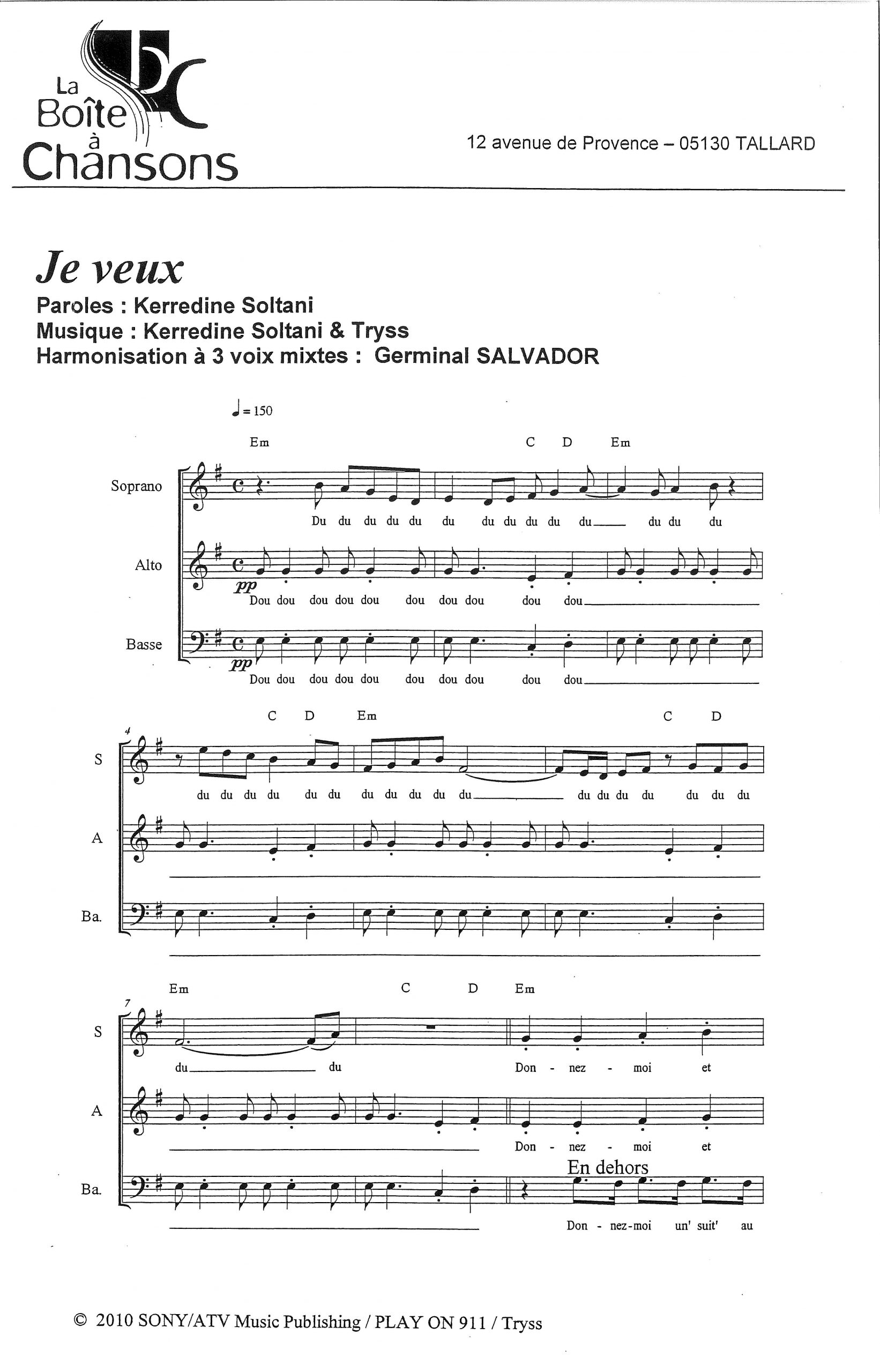 JE VEUX – 3 voix